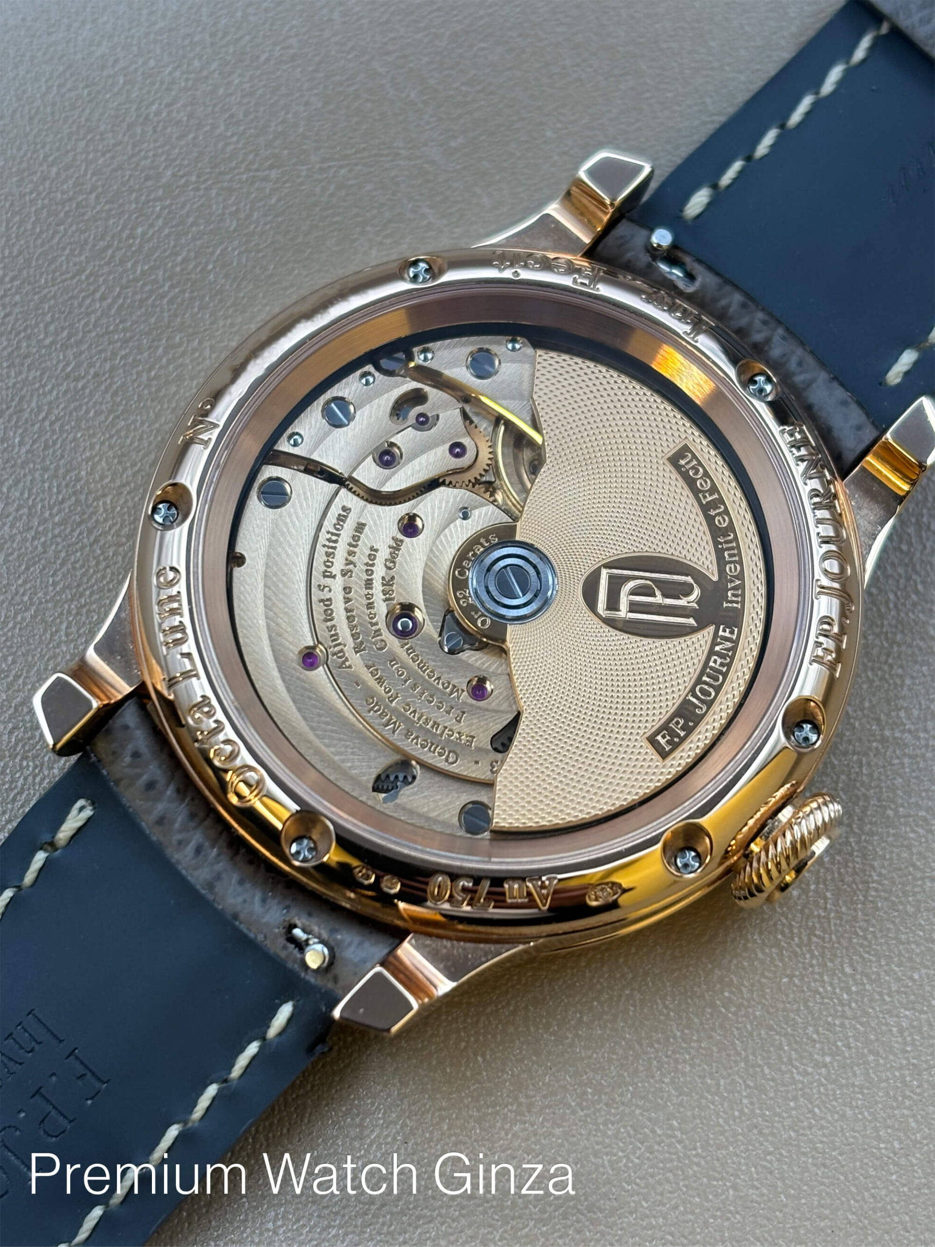 すべて18Kゴールドで製作されており、それ以来、ほとんどのF.P.ジュルヌウォッチの象徴となっています。