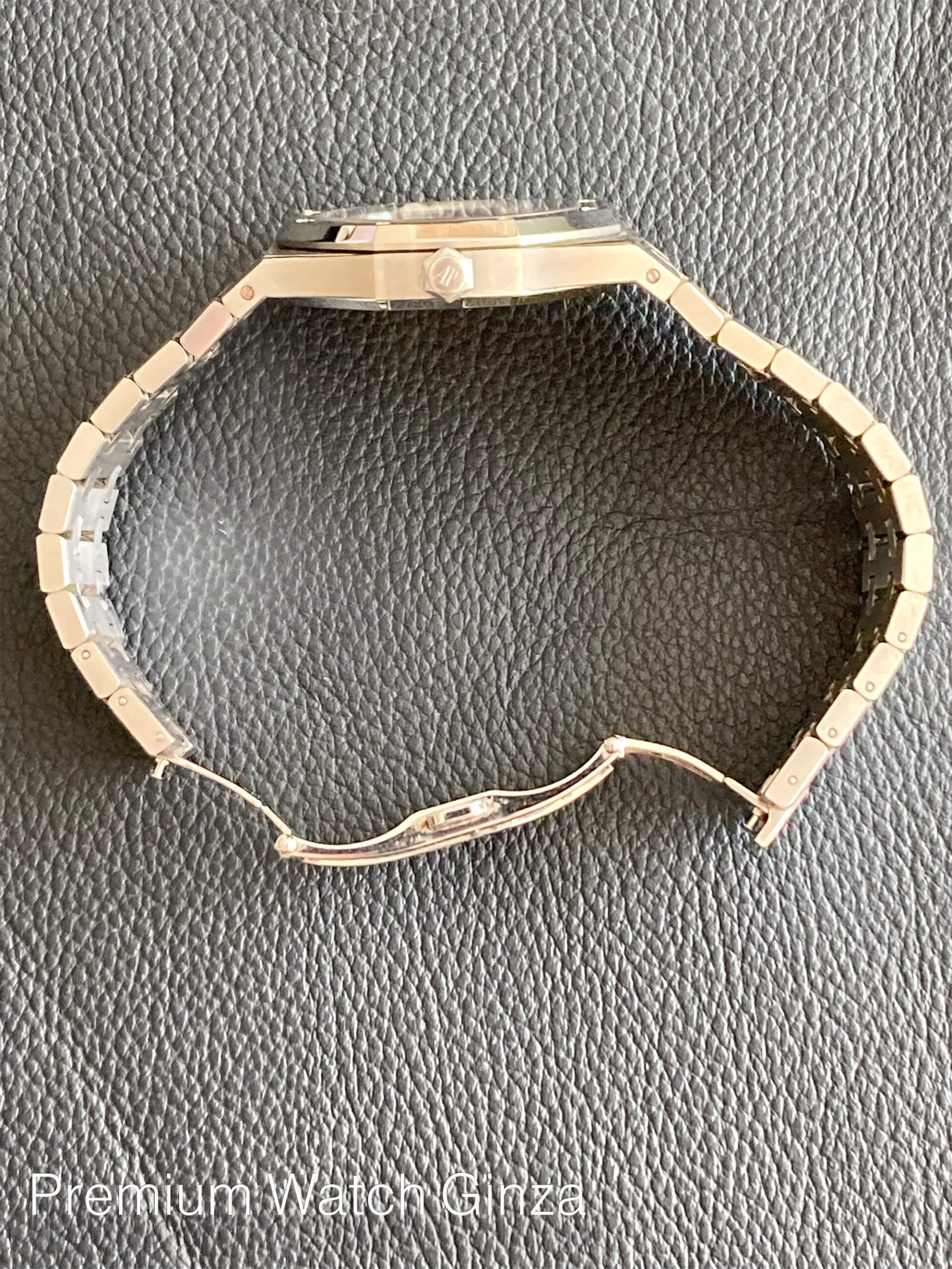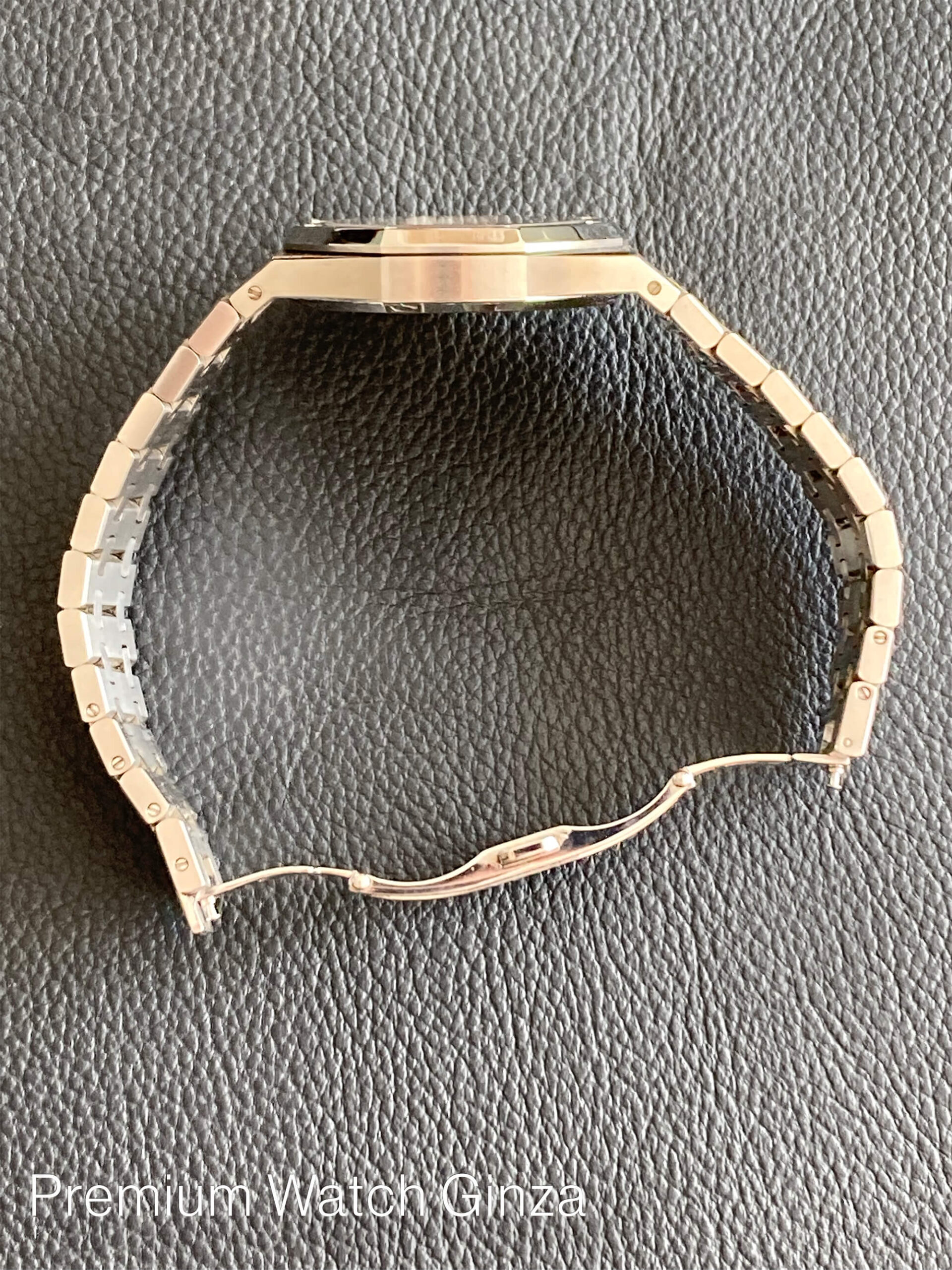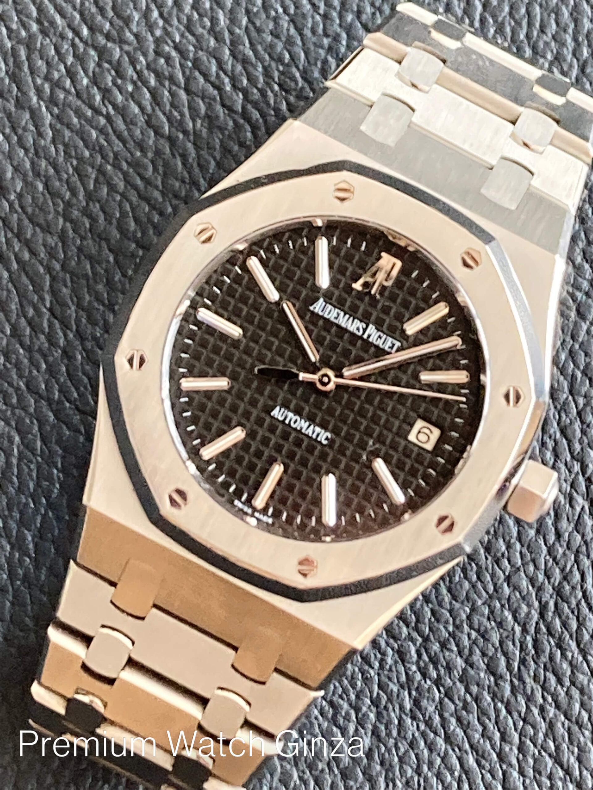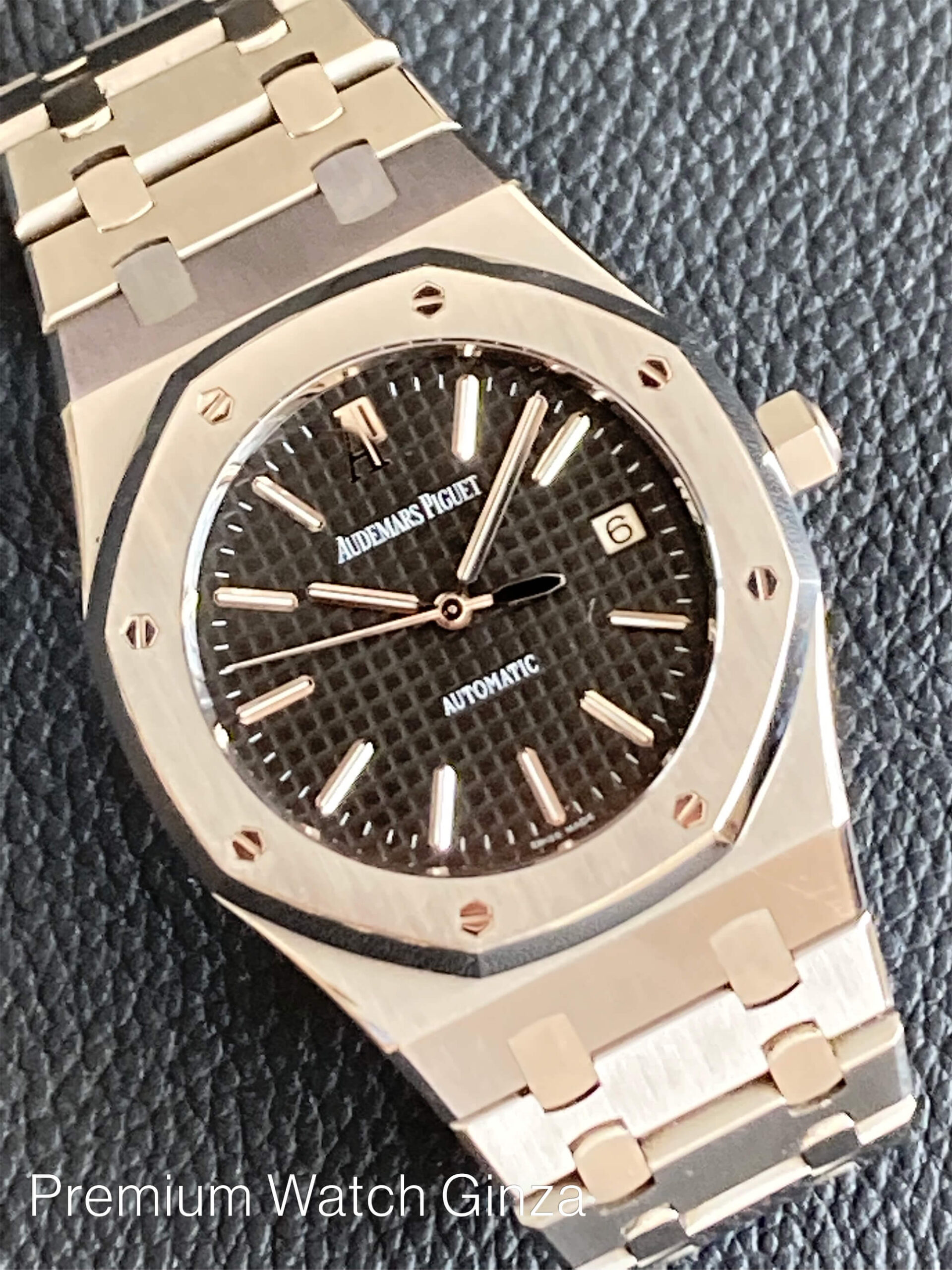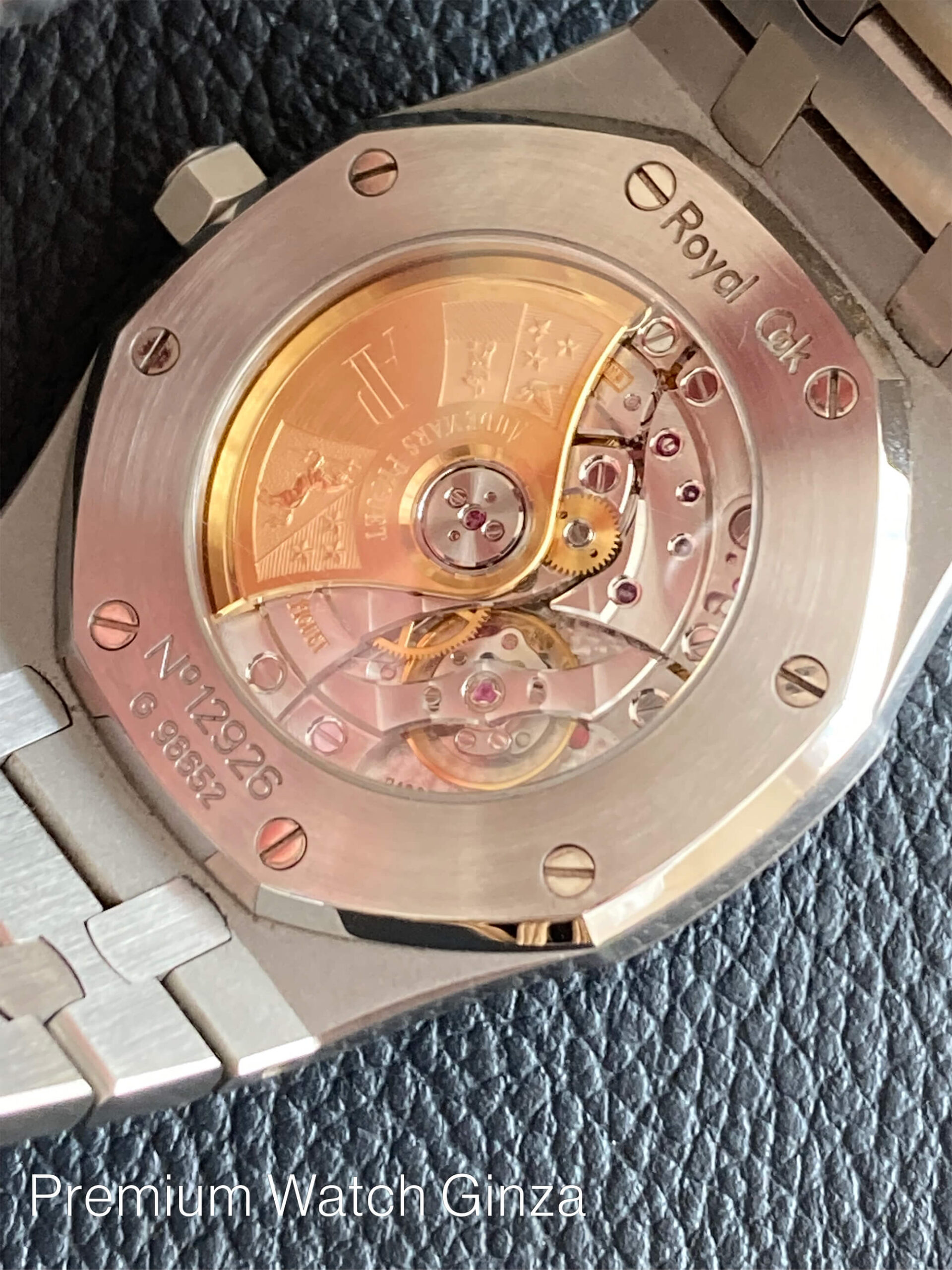 Ref.15300ST.OO.1220ST.03 オーデマ・ピゲを代表するラグジュアリースポーツウォッチの元祖モデルのロイヤルオーク。 1972年より基本的なデザイコードを守りながらも古さを全く感じさせない時計史に残る名作です。 本モデル「Ref.15300」は現代のブレイクしたロイヤルオークの初代機であり、ケース径も今では貴重な39mmでございます。 文字盤デザインレイアウトや外装デザインの多くが現行モデルと仕様が異なりますが、特にオーデマピゲの命運を分けたと言っても過言では無い自社開発ムーブメント「Cal.3120」が搭載されております。 2003年に発表された「Cal.3120」は16年の長きに渡りオーデマ・ピゲを支えた伝統的な振動数21,600の低振動数キャリバーでございます。 2019年発表の現行モデル「Ref.15500」では新型ムーブメント「Cal.4302」となり振動数28,800の高振動キャリバーを搭載しております。 2020年新作モデルではユニセックスモデルの34㎜ケース「Ref.77350」が発表されておりますが、こちらも振動数28,800の高振動キャリバーを搭載しておりますので低振動機の「Cal.3120」を搭載する3針のシンプルなオートマティックコレクションは現行モデルには無い魅力でございます。 古典的な低振動キャリバーの生産を続けて来た同メゾンによる3針オートマティックモデルである「Ref.15300」はムーブメントに拘りをお持ちの愛好家にとっても良い選択肢となるモデルでございます。 |