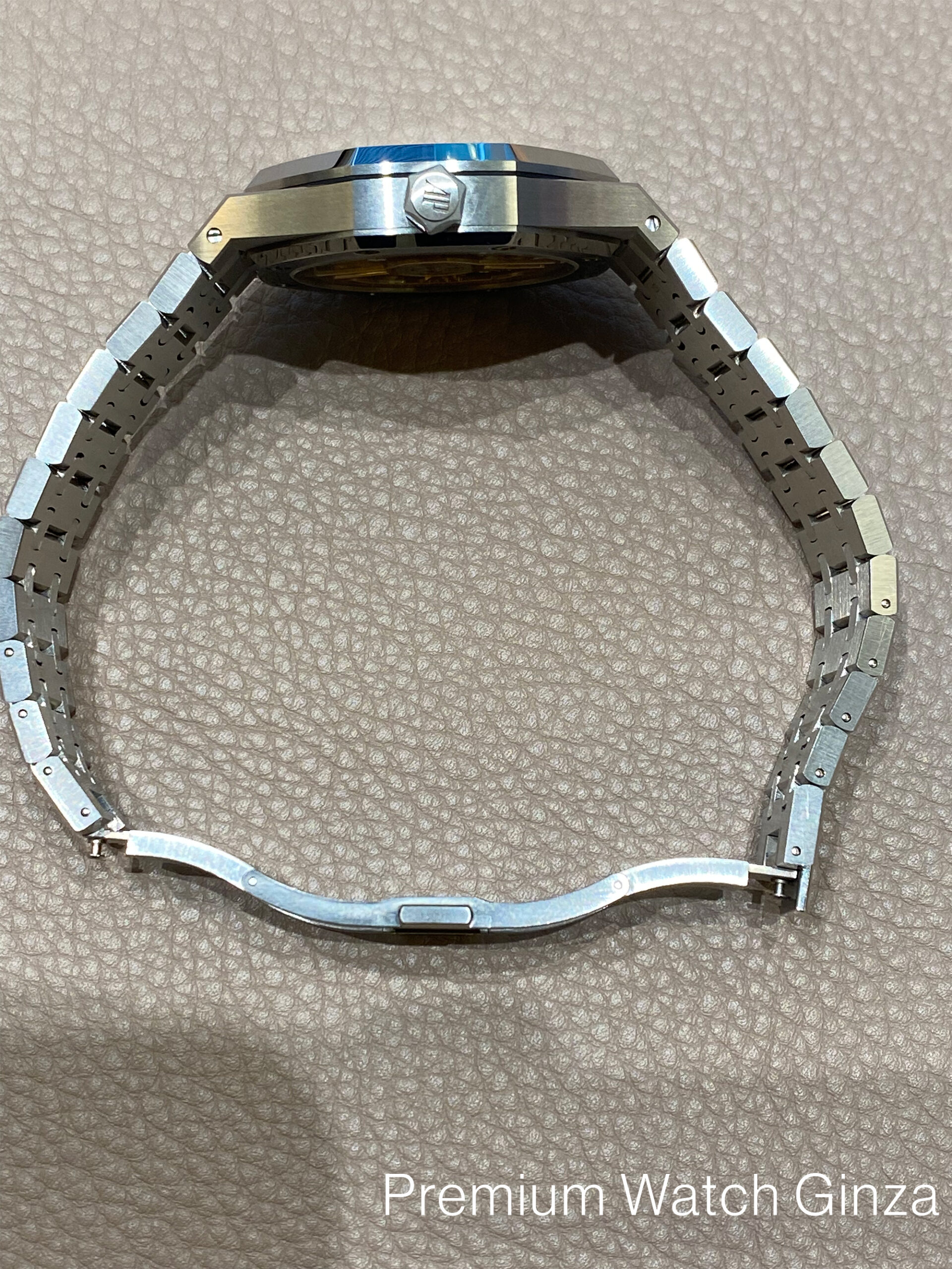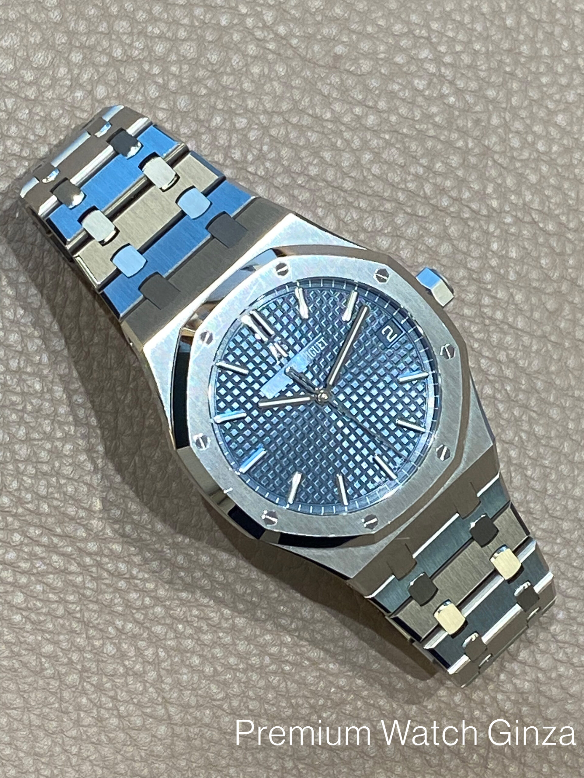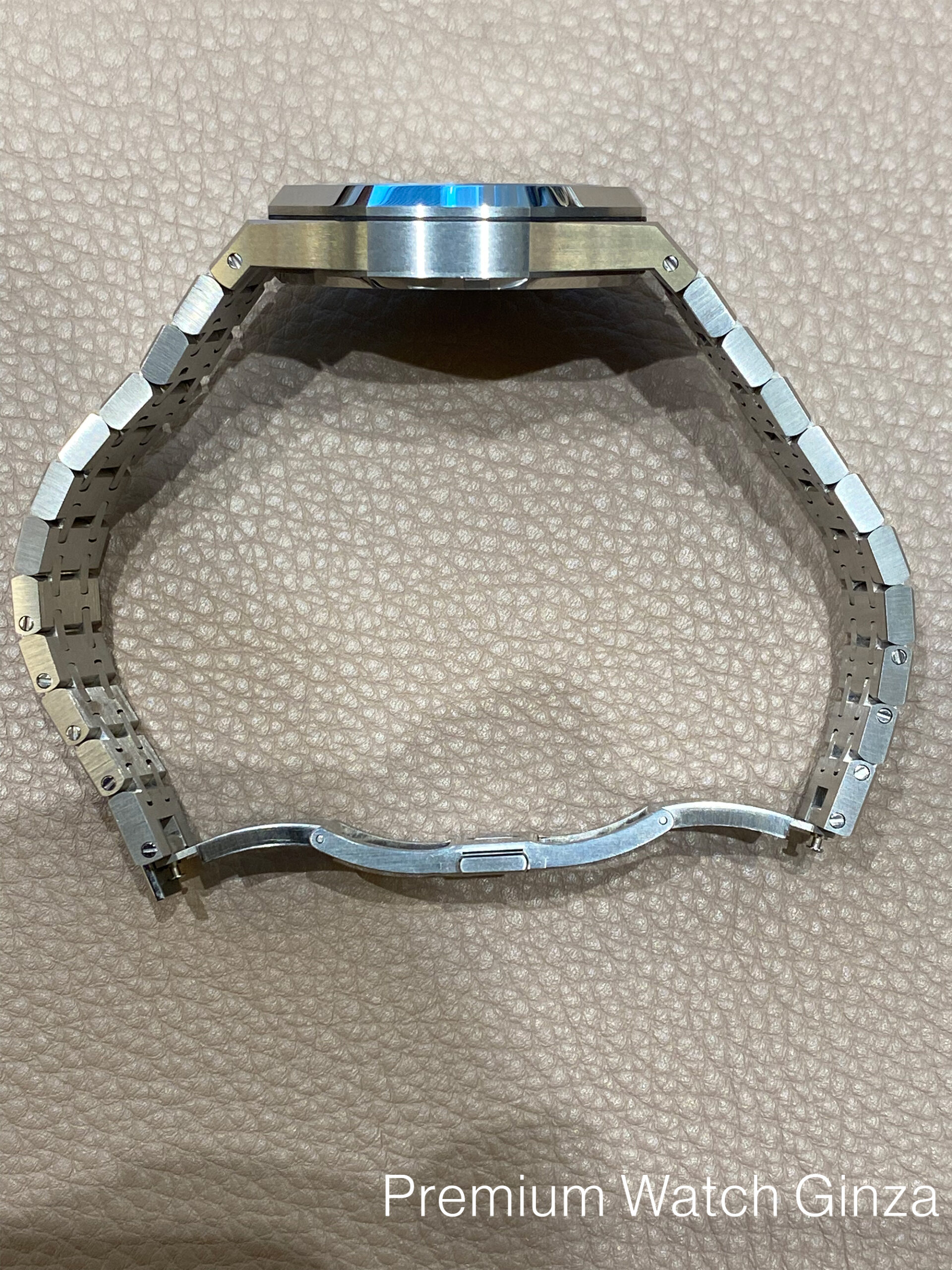 Ref.15500ST.OO.1220ST.01 オーデマ・ピゲを代表するラグジュアリースポーツウォッチの元祖モデルのロイヤルオーク。 1972年より基本的なデザイコードを守りながらも古さを全く感じさせない時計史に残る名作です。 現行モデルの中でも高い人気を誇る自動巻きムーブメントを搭載したシンプルな3針のオートマティックコレクションはこれまで41㎜・37㎜・34㎜の3サイズ展開となっており豊富なサイズ展開でコレクションの充実を図っておりまして、2019年発表の本モデル「Ref.15500」がリリースされております。 本モデルのムーブメントには「Cal.4302」が搭載されているのですが、2003年に発表された「Cal.3120」は16年の長きに渡りオーデマ・ピゲを支えた伝統的な振動数21,600の低振動数キャリバーでございます。 「Cal.3120」はロイヤルオークの歴代モデル(Ref.15300・Ref.15400・Ref.15450)に搭載されましたが、「Ref.15500」では新型ムーブメント「Cal.4302」となり振動数28,800の高振動キャリバーを搭載しております。 より、安定性を図った現代仕様に進化を遂げた現行ロイヤルオーク。 2020年モデルではユニセックスモデルの34㎜ケース「Ref.77350」が発表されておりますが、こちらも振動数28,800の高振動キャリバーを搭載しております。 |