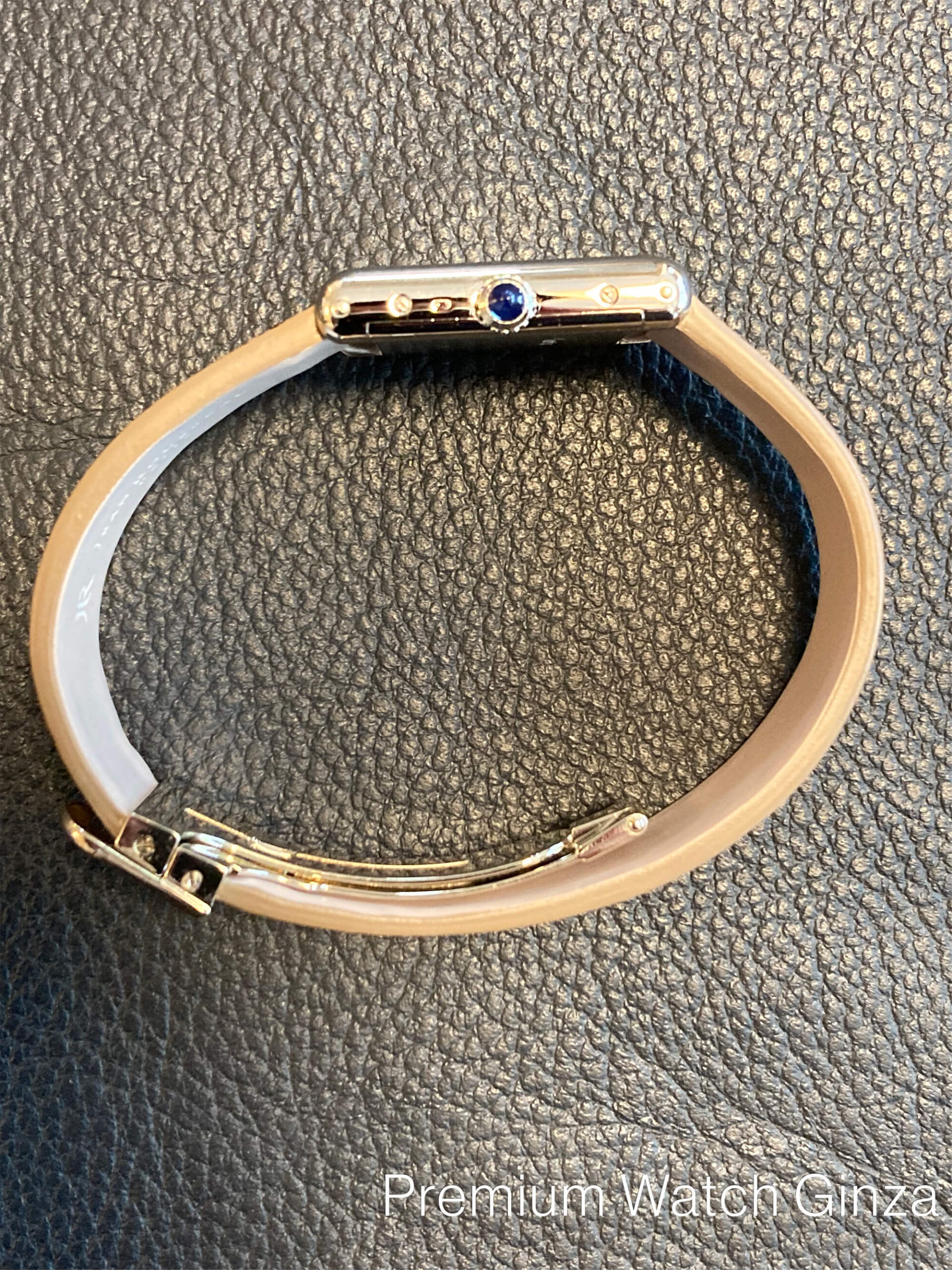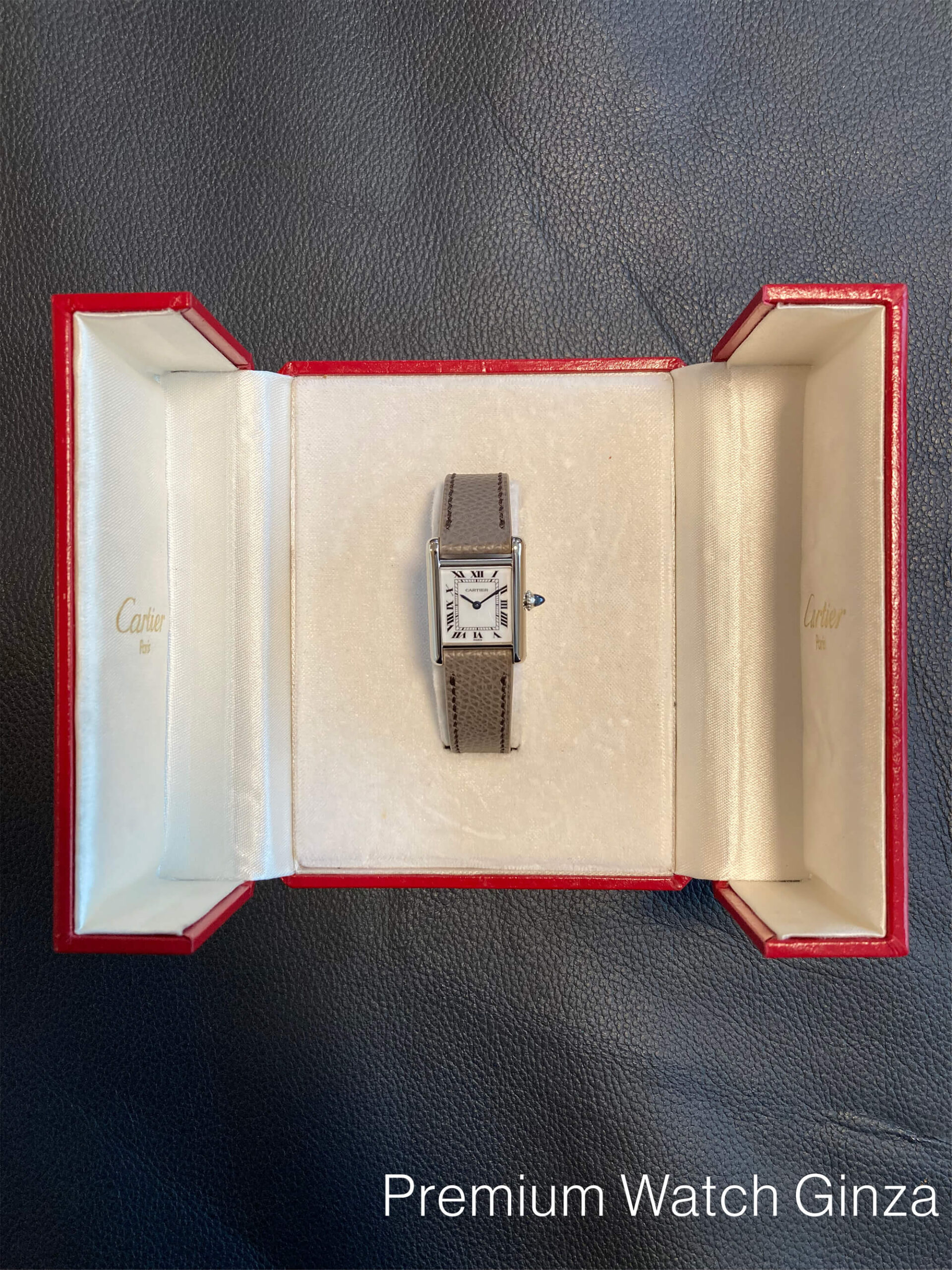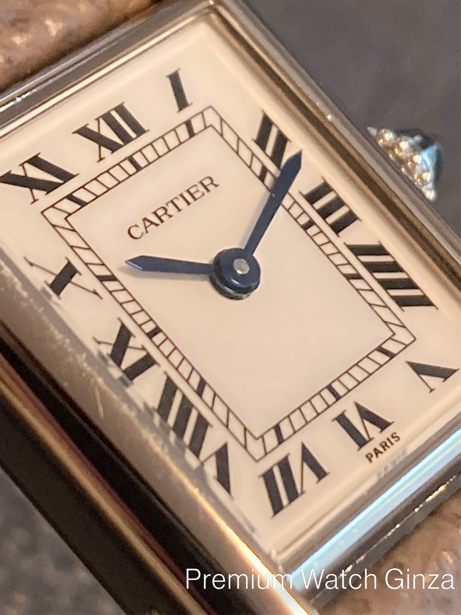 タンク・ルイカルティエ ホワイトゴールド 1917年に誕生したカルティエのみならず時計界の発明となった『タンク』コレクション。 商品化されたのは1919年ですが、当時は第一次世界大戦直後の世界で平和を強く願うルイカルティエにより、戦争の象徴であった戦車を敢えてモチーフにして、強いインパクトを与えました。 この意匠は現代まで踏襲されて派生モデルを含めて不変の超ロングセラーコレクションとなっております。 ご紹介する『タンク・ルイカルティエ』は1970年頃に製造された約半世紀前のアンティークでございます。 製造当時は、現在のような市場規模の大きな量産体制ではなく、上流階級である王族や貴族の為の真の贅沢品としての受注による極小量生産でカルティエは創業地であるパリ工房で製造を行なっていました。 文字盤にも現在の“SWISS MADE”ではなく、“PARIS”表記が残されております。 非常に貴重な仕様でございます。素材はK18ホワイトゴールドで、約半世紀前はK18素材といえば、ほぼ、イエローゴールドが主流でホワイトゴールド生産そのものは10分の1以下で極端に少なく流通量は限られております。 文字盤のローマンインデックスやレイルウェイ目盛り、300度以上の窯で焼き上げる青焼き(ブルースチール)ソード型長短針、サファイアカボションリューズは現在と変わらずカルティエを代表する意匠の工芸技術が約半世紀前から製作されていたことに改めて、カルティエの偉大な歴史にロマンを感じ、ブレない技術の凄みを堪能していただける逸品でございます。 |