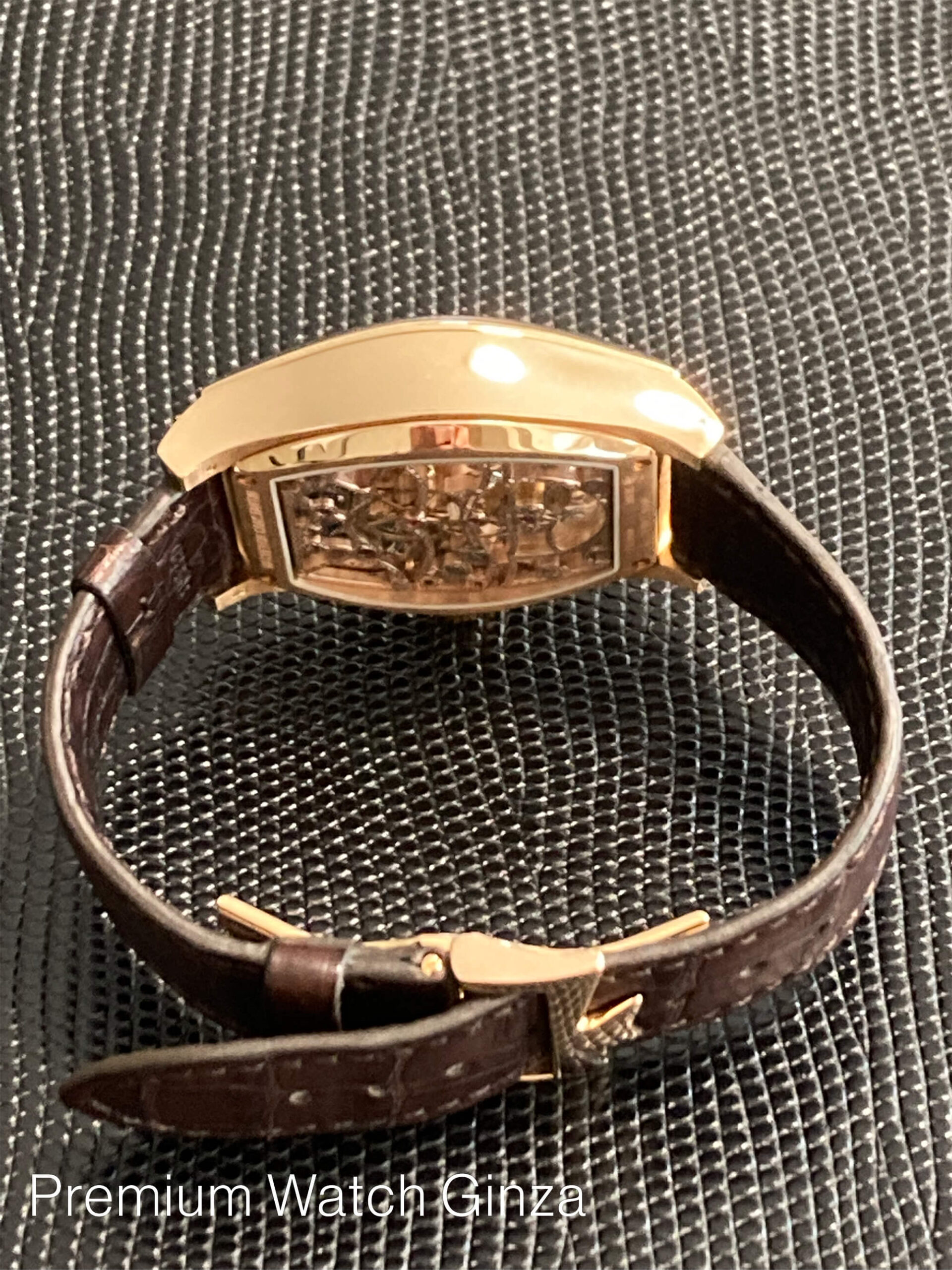 Ref.30135/000R-8973 Malte Tourbillon Openworked メインエンブレムである「マルタ」を冠した同メゾンを象徴するコレクションとして、長く製作されてきた代表する花形機種でございます。 マルタコレクションの初期はラウンド型でございましたが、数年間の変遷を経て、2012年に現行マルタのシャープなトノー型になりました。 同メゾンで100年の歴史のあるトノーシェイプでございますが、いわゆる単純なリバイバルではなく、 本モデルのスケルトントゥールビヨンは、設計から躯体構造まで、卓越した技術による肉抜きと 完全な薄い骨組みとなった機械に専門職の巨匠のエングレーバーによるギョウシェ装飾技術は溜息の出る至高の極地でございます。 しかもフリーハンドによる掘り込みでございますので、個体差による微妙な堀りの深さや細さの違いの生まれて、 ある種の一点モノの貴重で究極な美しさをご堪能出来る芸術品でございます。 残念ながら現在は生産終了しておりますので、ご興味ある方は是非ご覧ください。 |