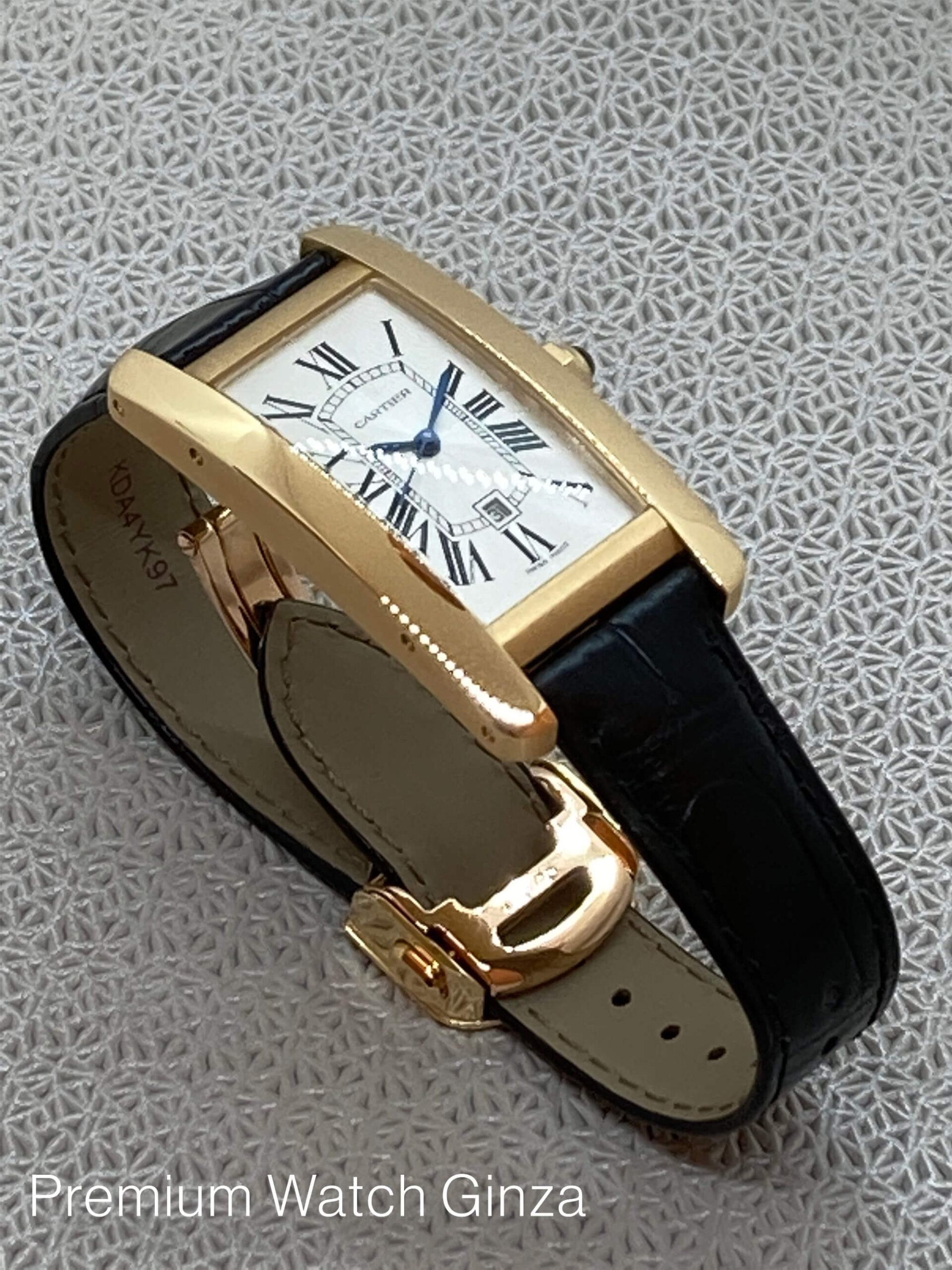 タンクアメリカン Ref.WGTA0040 1917年誕生の『タンク』初のシリーズ化したコレクション「タンクアメリカン」が誕生したのが1993年。 直近の世界情勢でベルリンの壁が崩壊したことにより、東西冷戦時代に終止符が打たれて、 世界的に資本主義社会が中心となる流れにあり、その中心的な国であるアメリカに向けたカルティエタンクコレクションの第1弾としたのが始まりでした。 このタンクアメリカンの元となったモデルが“タンクサントレ”でアメリカンが後継的なモデルになります。 ケースの形状が長方形(レクタンギュラー)で直線的な意匠が特徴的でございますが、 ルーツとなったタンクサントレが1924年に製造されているので、タンクコレクションの中でも最長となります。 ケース形状だけでなく、文字盤のローマンインデックスやレイルウェイミニッツトラックサークル、ブルーサファイアカボション リューズ、ブルースチールハンド(青焼き長短針)は当時から基本デザインは変わらず踏襲されております。 |
