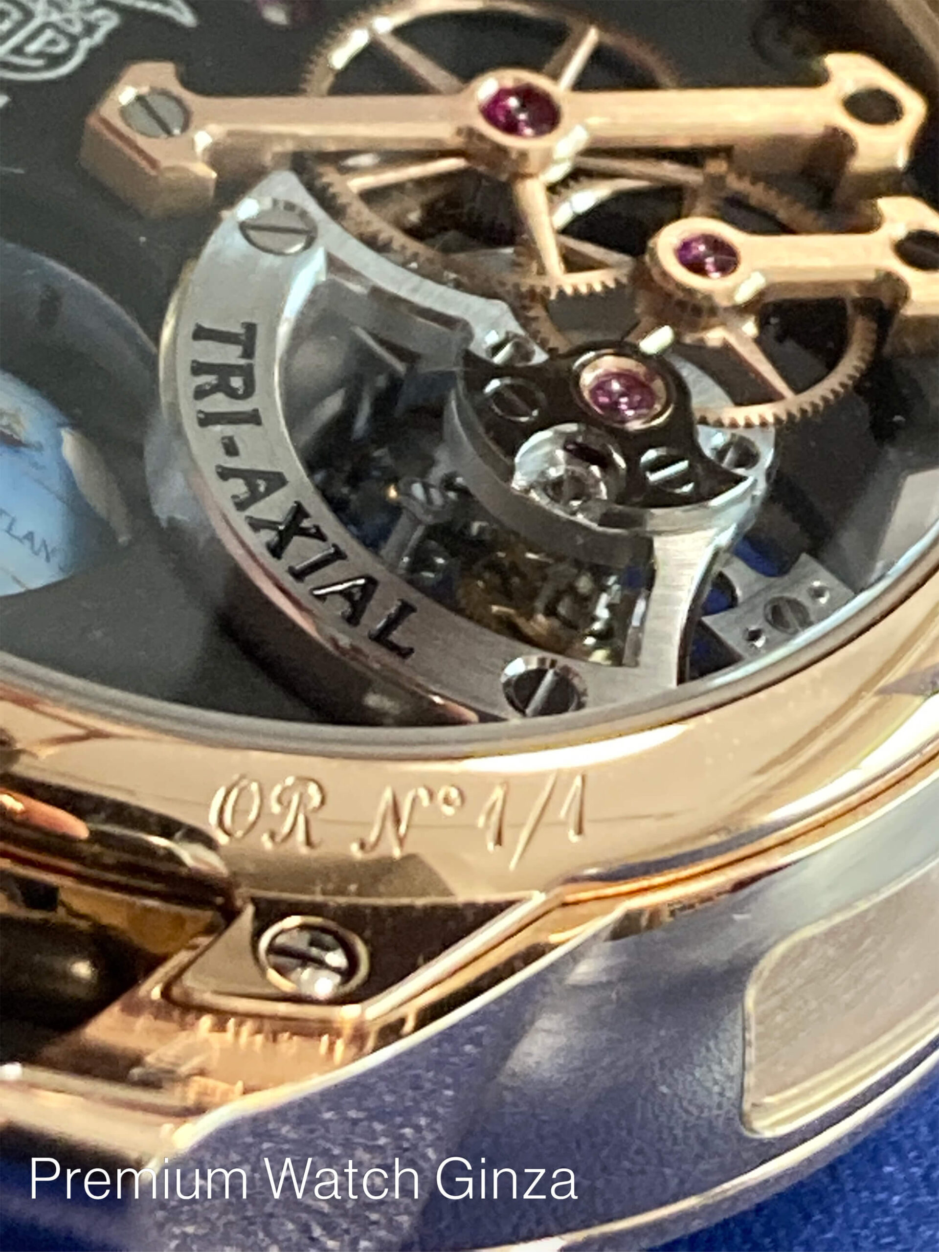 この「トライアクシャル・トゥールビヨン」3軸による構成で回転するキャリッジ構造でございます。
