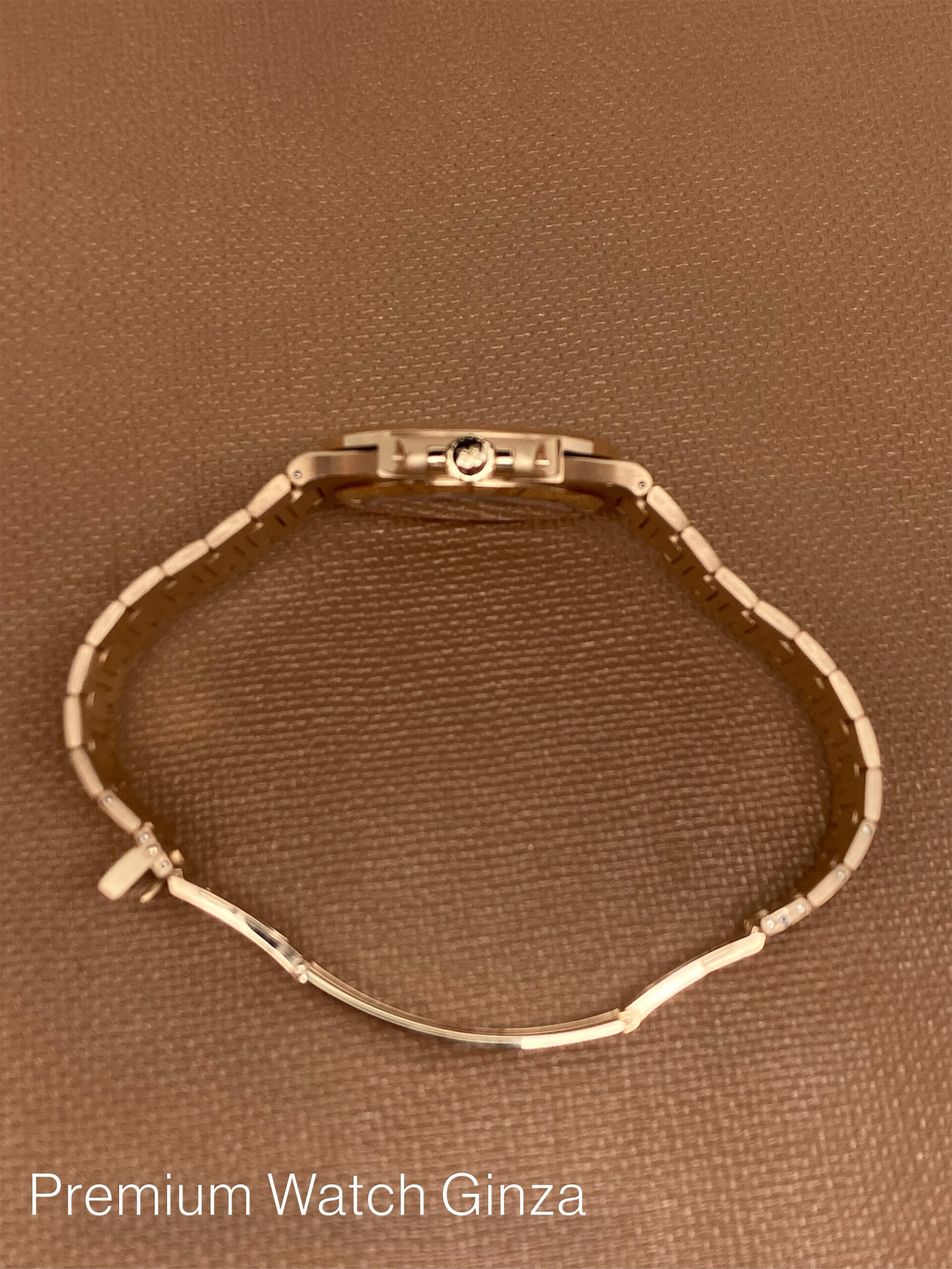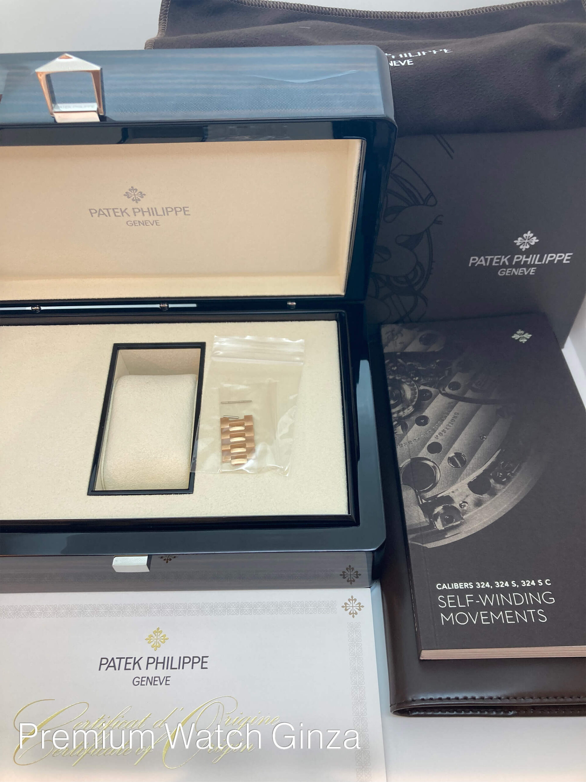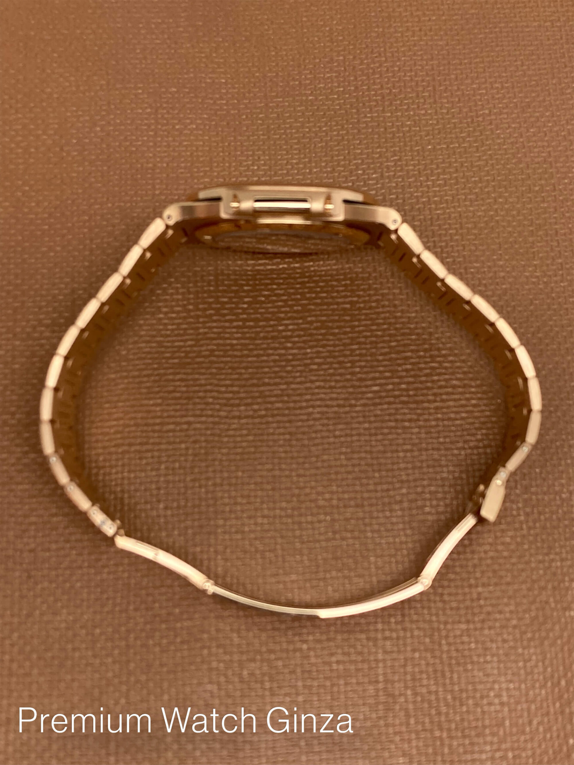 Ref.5711/1R-001 NAUTILUS 1976年に誕生したノーチラスコレクション。 ラグジュアリースポーツモデルの代表格として、クラシック時計の様な薄さで、防水時計を製作するという概念の元に数々の機種が販売されて参りました。 一般的な防水時計は、堅牢性を保つ為、ねじ込み式の裏蓋で防水性を維持致します。 しかし、その構造は厚みが出てしまう為、高級感が損なわれる欠点が有り、当時としては革新的な裏蓋を無くし、ケース両サイドの通称「耳」と呼ばれる張り出したパーツをスクリューシャフトで密閉して防水性を確保致しました。 1976年同時期に発売された著名なSUV車レンジローバーの乗車時の際にマッチするスポーティな時計というコンセプトを元に製作されたエピソードもございます。 デザイン元は巨匠ジェラルドジェンタ氏、ロイヤルオークの鋭角な八角形と比較すると控えめで流麗な形状の外装デザインでございますが、これがパテック哲学を感じて、独自の緩やかで深みを与えてくれる存在となっております。 このRef.5711が発表されたのが、ノーチラス誕生30周年にあたる2006年。 同社においても様々なターニングポイントとなったこの年にノーチラス現行コレクションの基幹となるモデルがRef.5711でございます。 そして9年後の2015年に本モデルRef,5711/1R-001が発表されました。 元々、アリゲーター革ベルト仕様の5711Rはございましたが、K18ブレスレットモデルは、クロノグラフのRef.5980/1Rのみでございました。 また、発表当時ノーチラス40年間の歴史の中でもK18RGブレスレットモデルは初めてでございます。文字盤のブラウングラデーションもRef.5980のブラックとは異なり、 同社の巧みな染色技術により絶妙なブラックに近いブラウンの濃淡が表現されておりまして、非常に表情豊かで独特な美しさを醸し出しており、材質のローズゴールドとの相性が抜群でございます。 大人気機種でございましたが、惜しまれつつ既に生産が終了しております。 2015年~2021年の僅か6年間の中で長く採用されてきたcal.324SCから、最後の約2年間のみの生産で非常に希少となった新型基幹ムーブメントcal.26-330SCが搭載されております。 計時精度に影響を及ぼす点を重視して長く採用されなかったストップセコンド機能が同社の社内品質検査規格であるPPシールの極めて厳格な基準を合格して製品化された事に非常に付加価値がございます。 |