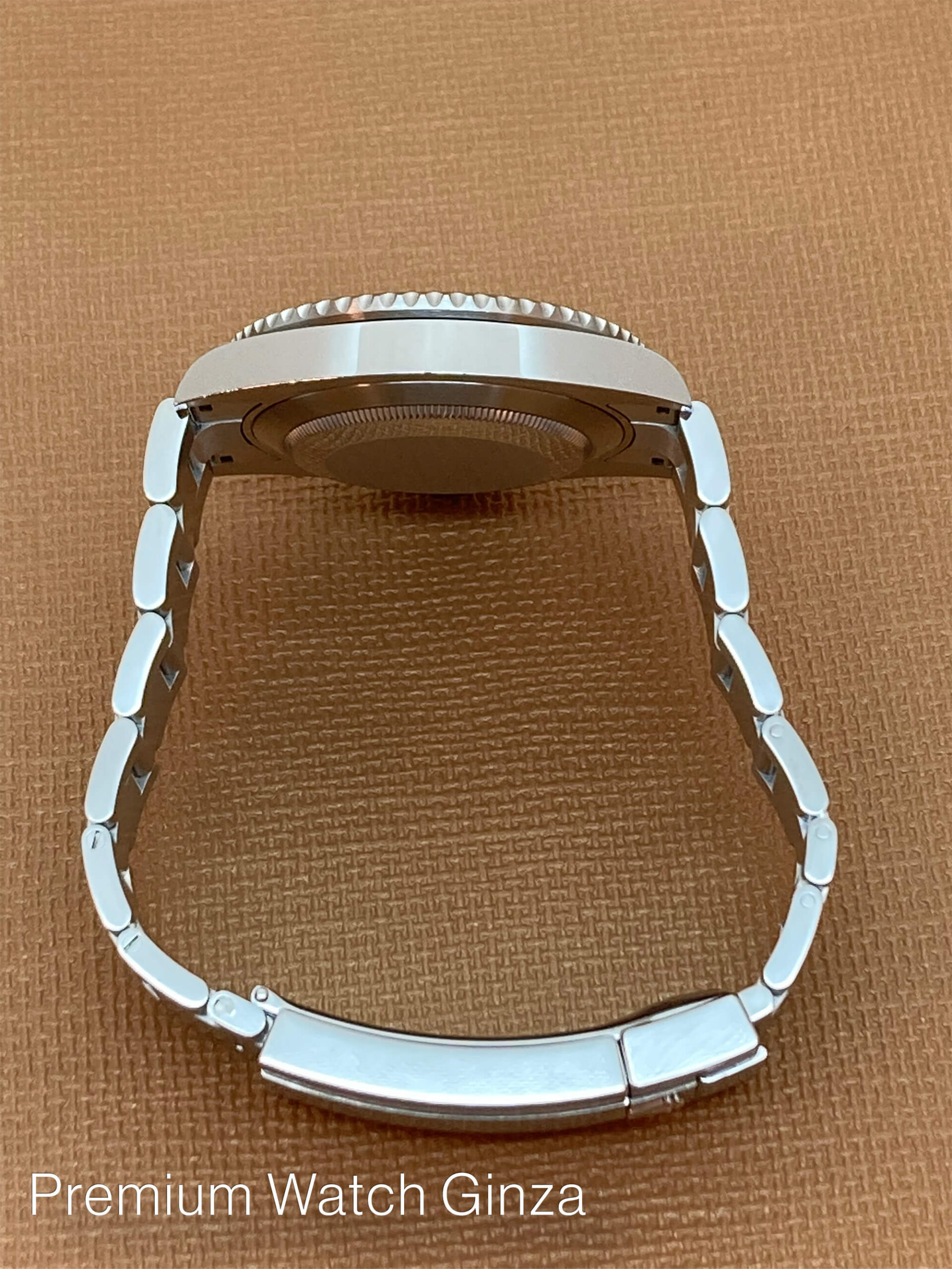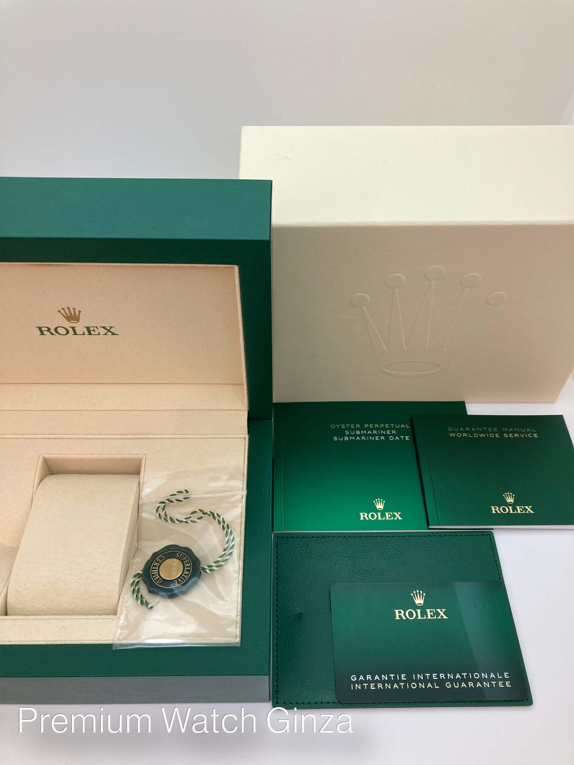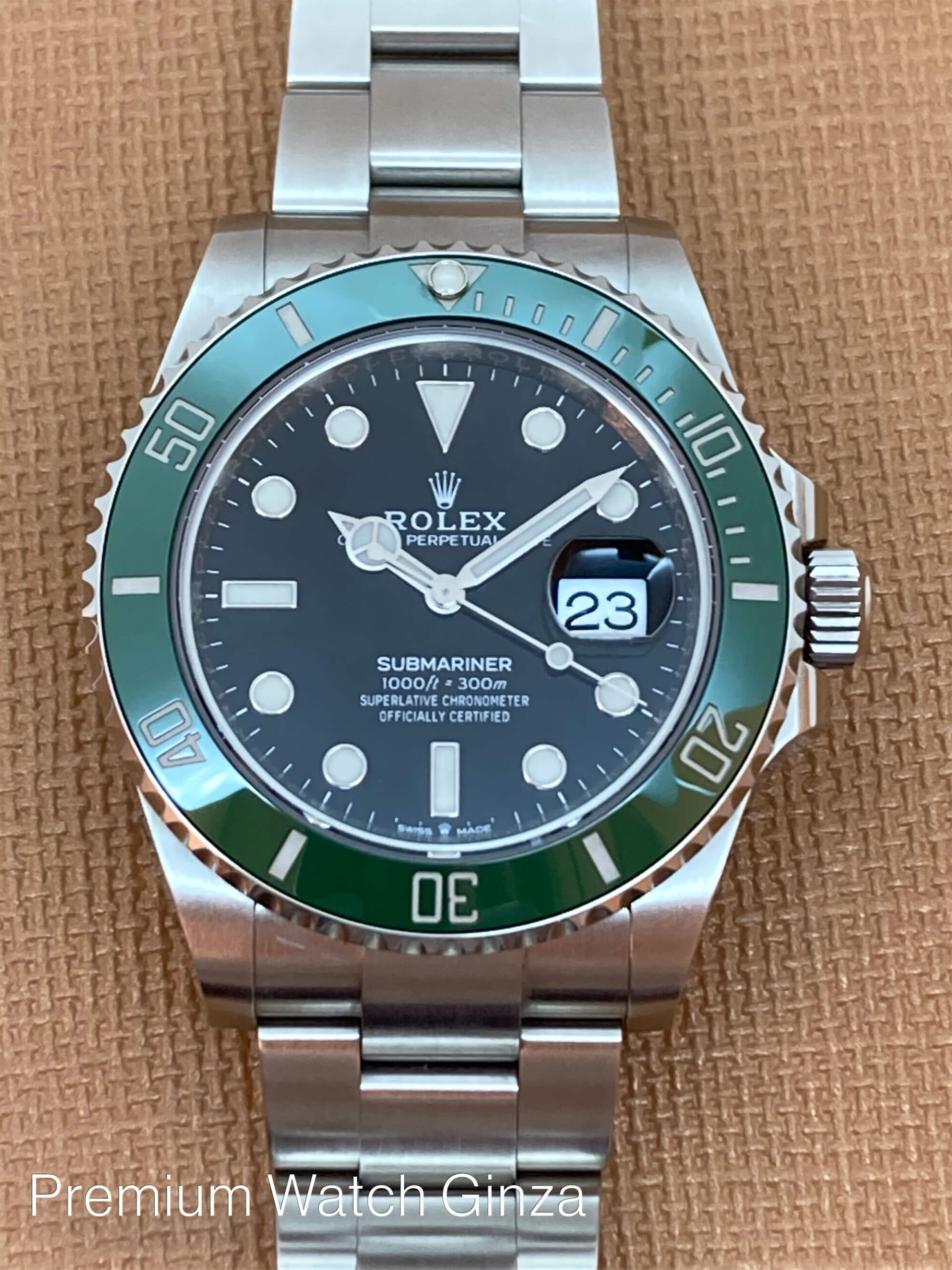 Ref.216610LV SUBMARINER DATE GREEN 「サブマリーナー・デイト」の最新機種。 前モデル(Ref.116610LV)からの変更点は少ないながらも、 ケースサイズが41mmにサイズアップ致しまして、文字盤がサブマリーナー50周年記念“初代グリーンサブ”と同じ緑ベゼル×黒文字盤に戻りました。 本モデルで大きな変更点が緑セラクロムベゼルです。 既にセラクロムベゼルは多数採用されておりますが、ROLEX社のカンパニーカラーでもあるグリーンをセラクロムベゼル仕様で施したサブマリーナーに採用されるというのは、 趣がございますし、セラミック製で非常に硬く、耐傷性や耐腐蝕性に優れ、紫外線の影響も受けにくい素材でございますので、 本格的な潜水時計としての用途で実用性が高まったように感じる良きモデルチェンジでございます、 リファレンスナンバーの末尾“LV”は、フランス語 “Lunette Vert”の略で、緑のベゼルを意味しています。 |
