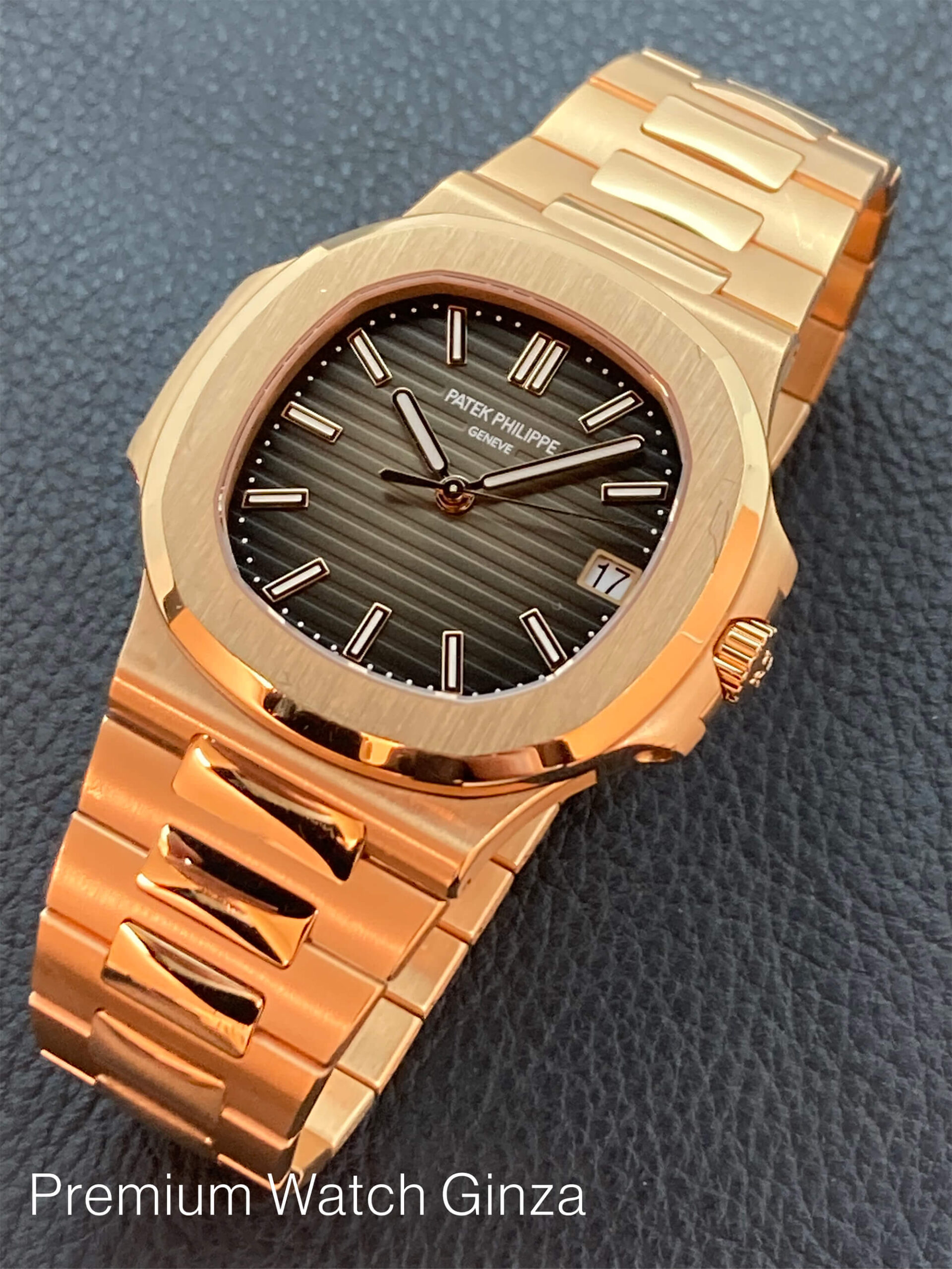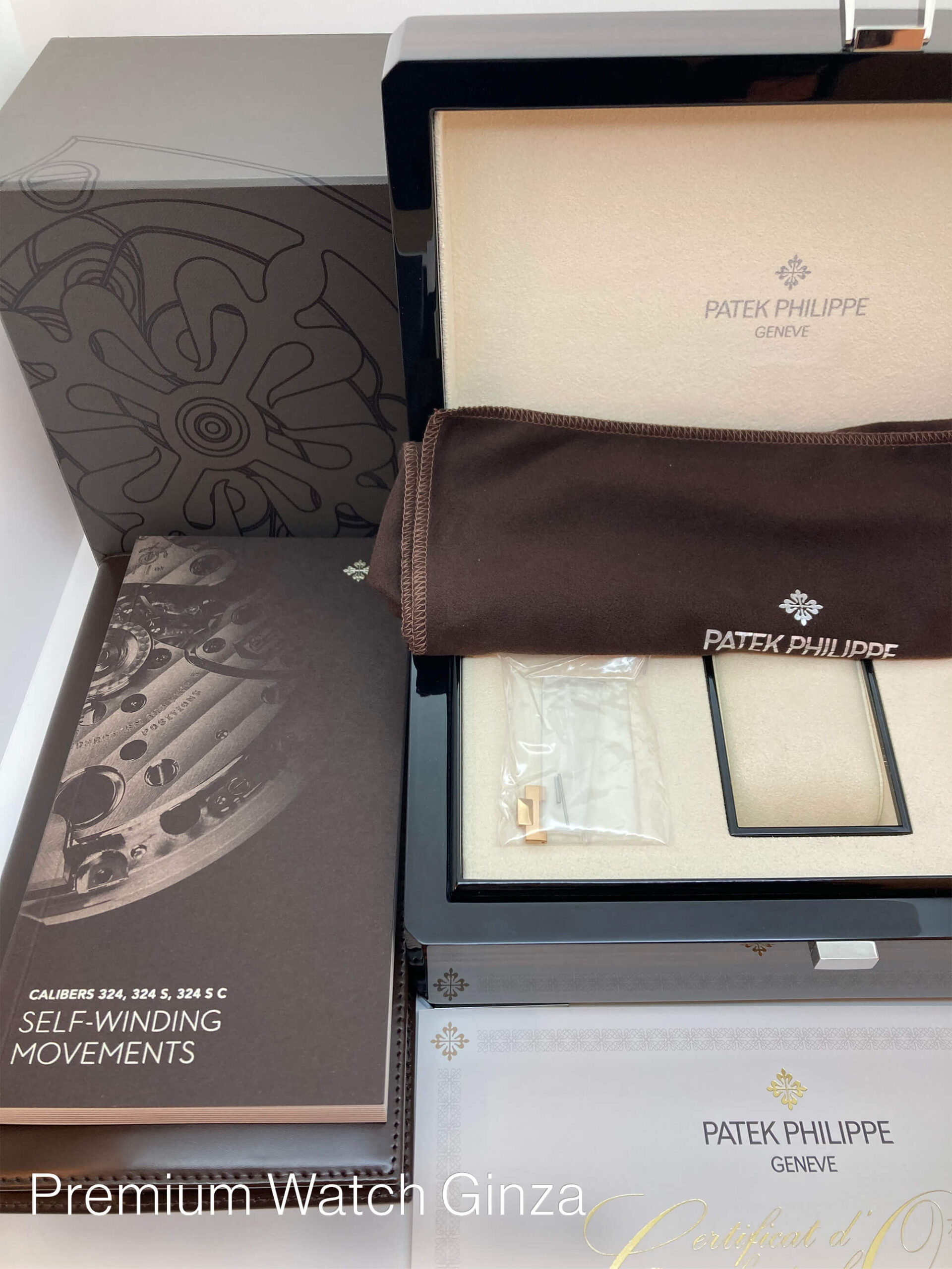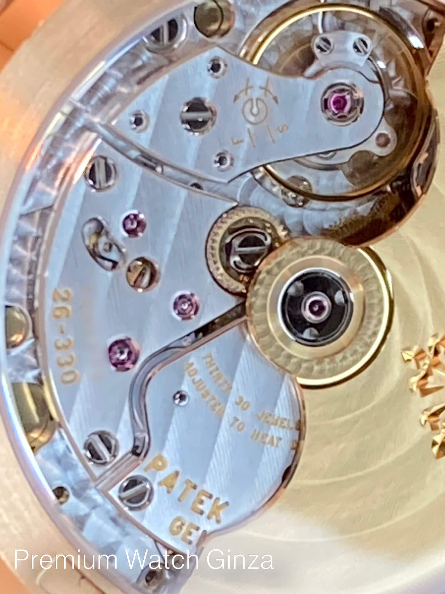 Ref.5711/1R-001 cal.26-330SC NAUTILUS 1976年に誕生したノーチラスコレクション。 ラグジュアリースポーツモデルの代表格として、クラシック時計の様な薄さで、防水時計を製作するという概念の元に数々の機種が販売されて参りました。 一般的な防水時計は、堅牢性を保つ為、ねじ込み式の裏蓋で防水性を維持致します。しかし、その構造は厚みが出てしまう為、高級感が損なわれる欠点が有り、 当時としては革新的な裏蓋を無くし、ケース両サイドの通称「耳」と呼ばれる張り出したパーツをスクリューシャフトで密閉して防水性を確保致しました。 1976年同時期に発売された著名なSUV車レンジローバーの乗車時の際にマッチするスポーティな時計というコンセプトを元に製作されたエピソードもございます。 デザイン元は巨匠ジェラルドジェンタ氏、ロイヤルオークの鋭角な八角形と比較すると控えめで流麗な形状の外装デザインでございますが、 これがパテック哲学を感じて、独自の緩やかで深みを与えてくれる存在となっております。 このRef.5711が発表されたのが、ノーチラス誕生30周年にあたる2006年。 同社においても様々なターニングポイントとなったこの年にノーチラス現行コレクションの基幹となるモデルがRef.5711でございます。 そして9年後の2015年に本モデルRef,5711/1R-001が発表されました。 元々、アリゲーター革ベルト仕様の5711Rはございましたが、K18ブレスレットモデルは、クロノグラフのRef.5980/1Rのみでございました。 また、発表当時ノーチラス40年間の歴史の中でもK18RGブレスレットモデルは初めてでございます。文字盤のブラウングラデーションもRef.5980のブラックとは異なり、 同社の巧みな染色技術により絶妙なブラックに近いブラウンの濃淡が表現されておりまして、 非常に表情豊かで独特な美しさを醸し出しており、材質のローズゴールドとの相性が抜群でございます。 大人気機種でございましたが、惜しまれつつ既に生産が終了しております。 2015年~2021年の僅か6年間の中で長く採用されてきたcal.324SCから、 最後の約2年間のみの生産で非常に希少となった新型基幹ムーブメントcal.26-330SCが搭載されております。 計時精度に影響を及ぼす点を重視して長く採用されなかったストップセコンド機能が同社の社内品質検査規格であるPPシールの極めて厳格な基準を 合格して製品化された事に非常に付加価値がございます。 |