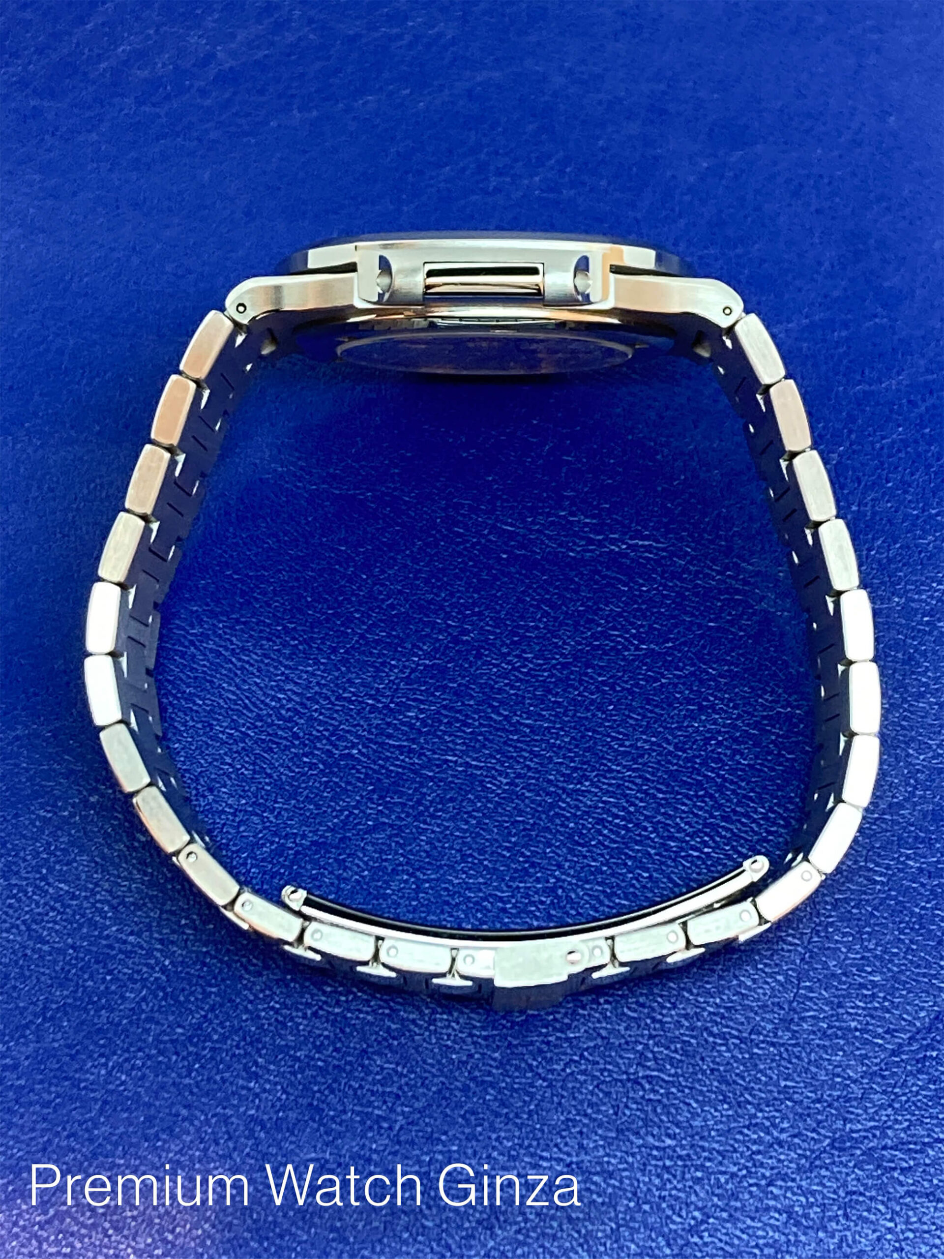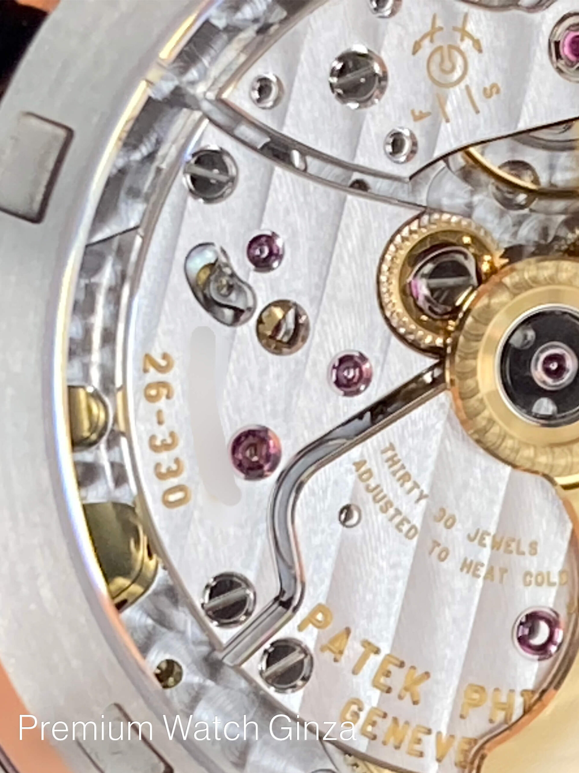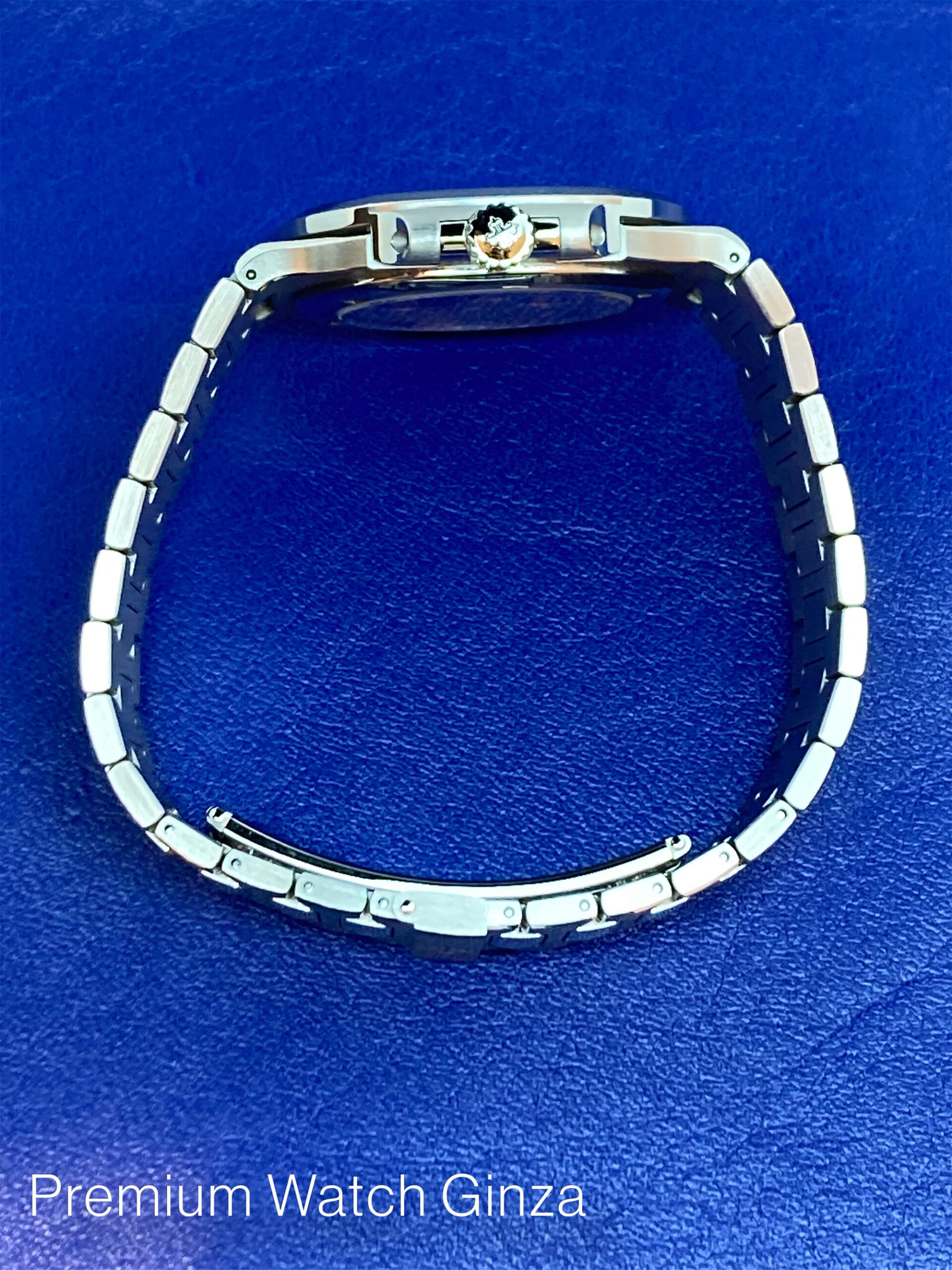 Ref.5711/1A-010 cal.26-330SC NAUTILUS 1976年に誕生したノーチラスコレクション。 ラグジュアリースポーツモデルの代表格として、クラシック時計の様な薄さで、防水時計を製作するという概念の元に数々の機種が販売されて参りました。 一般的な防水時計は、堅牢性を保つ為、ねじ込み式の裏蓋で防水性を維持致します。しかし、その構造は厚みが出てしまう為、高級感が損なわれる欠点が有り、 当時としては革新的な裏蓋を無くし、ケース両サイドの通称「耳」と呼ばれる張り出したパーツをスクリューシャフトで密閉して防水性を確保致しました。 1976年同時期に発売された著名なSUV車レンジローバーの乗車時の際にマッチするスポーティな時計というコンセプトを元に製作されたエピソードもございます。 デザイン元は巨匠ジェラルドジェンタ氏、ロイヤルオークの鋭角な八角形と比較すると控えめで流麗な形状の外装デザインでございますが、 これがパテック哲学を感じて、独自の緩やかで深みを与えてくれる存在となっております。 この5711/1Aが発表されたのが、ノーチラス誕生30周年にあたる2006年。 同社においても様々なターニングポイントとなったこの年にノーチラス現行コレクションの基幹となるモデルがRef.5711/1A-010でございます。 文字盤が前機種のRef.3800/1A無地の黒文字盤ローマンインデックスから復活の横ストライプのブルーブラックのグラデーションに変更になった事も合わせて、 発売当初から反響も大きく、大人気機種でございましたが、惜しまれつつ既に生産が終了しております。 2006年~2020年の間の14年間の中で長く採用されてきたcal.324SCから、 最後の約1年間のみの生産で非常に希少となった新型基幹ムーブメントcal.26-330SCが搭載されております。 計時精度に影響を及ぼす点を重視して長く採用されなかったストップセコンド機能が同社の社内品質検査規格であるPPシールの極めて厳格な基準を 合格して製品化された事に非常に付加価値がございます。 生産終了品 |