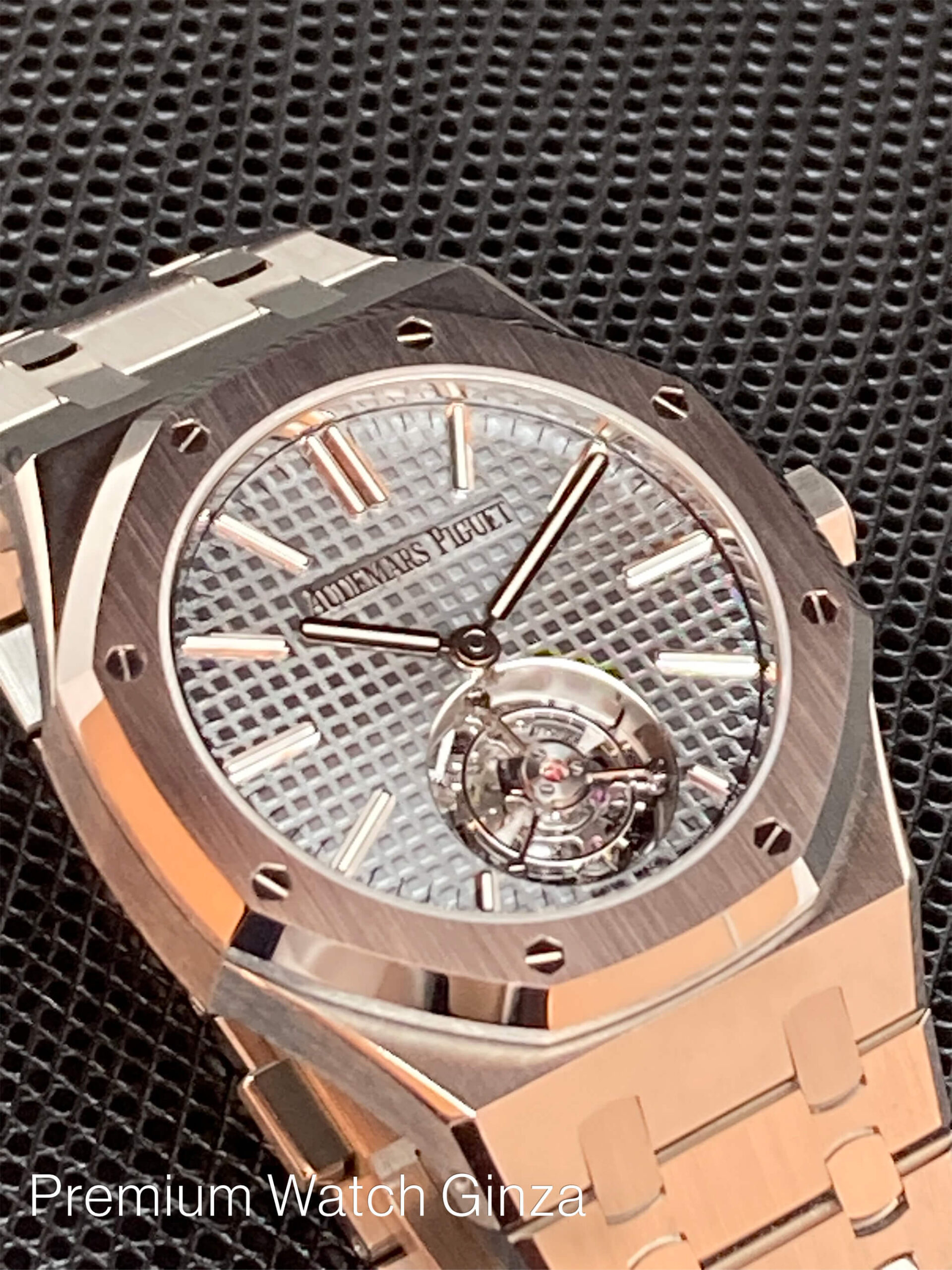 長らく採用された伝統の手巻きエクストラシンムーブメントから、新規開発された自動巻き機構のトゥールビヨンでございます。