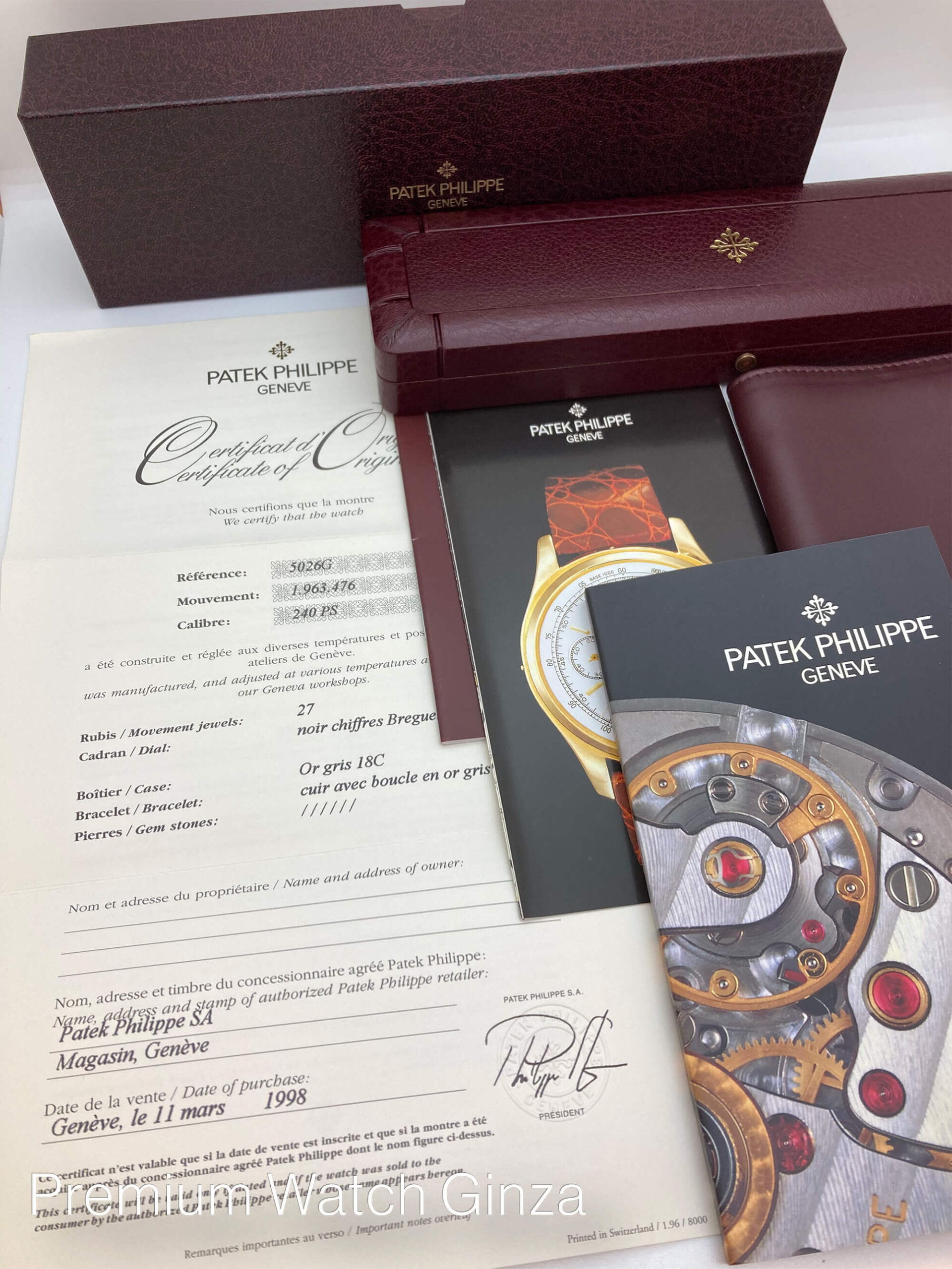 BOX、国際保証書(1998年ジュネーブ本店にて)、取扱説明書 |