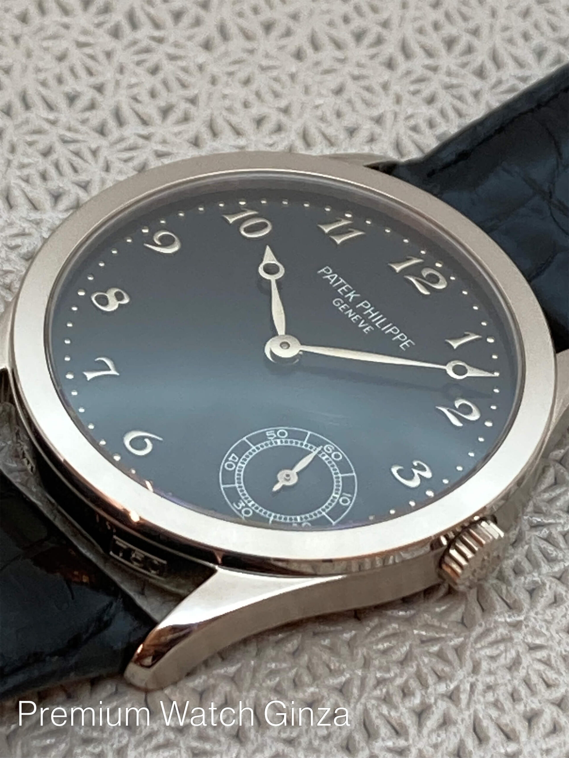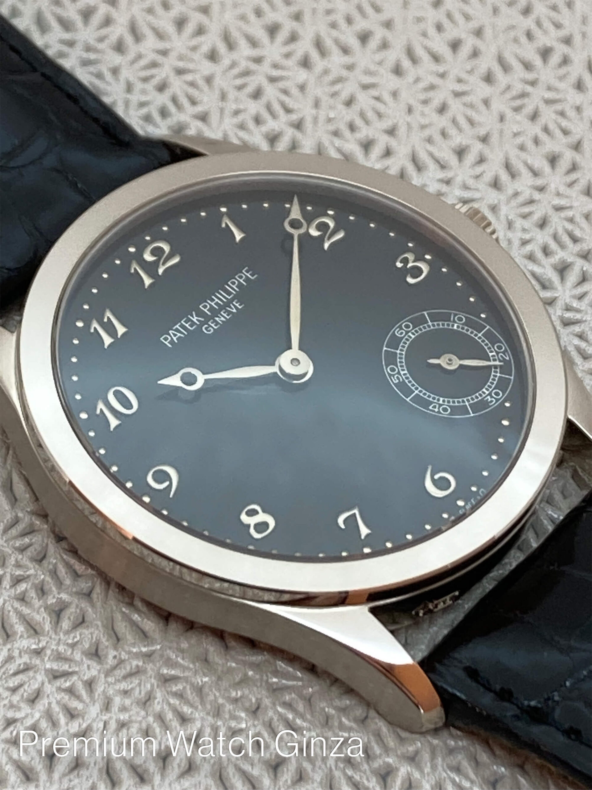 Ref.5026G CALATRAVA パテックフィリップを象徴するカラトラバはラウンド型腕時計のクラシックとして世代や流行を超越した存在でございます。 “Less is More” 『少ない方が豊かである』 この名言に最も相応しい腕時計であるカラトラバは、1932年に誕生した「Ref.96」からその物語は始まり、 バウハウスの影響を受けシンプルな機能美を表現したデザインはその後のドレスウォッチの礎となった時計史に残る不朽の名作でございます。 搭載される機構も手巻き式から初めて自動巻き機構が誕生したのが1952年で名機cal.12-600ATでございます。 そこから1977年にマイクロローター(偏心型)式の現在も変わらず基幹ムーブメントとして、 多くの製品に採用されているcal.240が誕生致しまして、数多くのモデルが誕生致しました。 マイクロローター式自動巻き機構の登場により、合理的に厚みを軽減してスリム化を成すことが出来て、 より薄く美しいフォルムの外装と薄さによる快適で実用的な進化を遂げました。 そのカラトラバも1989年の同メゾン創業150周年を節目に裏蓋にサファイアクリスタルを採用する仕様に変わり、 その流れで1997年に誕生した同モデルRef.5026の搭載するcal.240も裏蓋から美しい22Kマイクロローター仕様のムーブメントが鑑賞出来ます。 また、ケース形状は『96』を踏襲した鋭角なフォルムで、文字盤はブレゲ数字インデックス、ブレゲ時分針を採用した古典で認知度高く人気の組み合わせでございます。 また1980年代から1990年代のゴールド素材を使用した文字盤の6時位置に表記される“σSWISSσ”が表記されております。 生産終了品 |