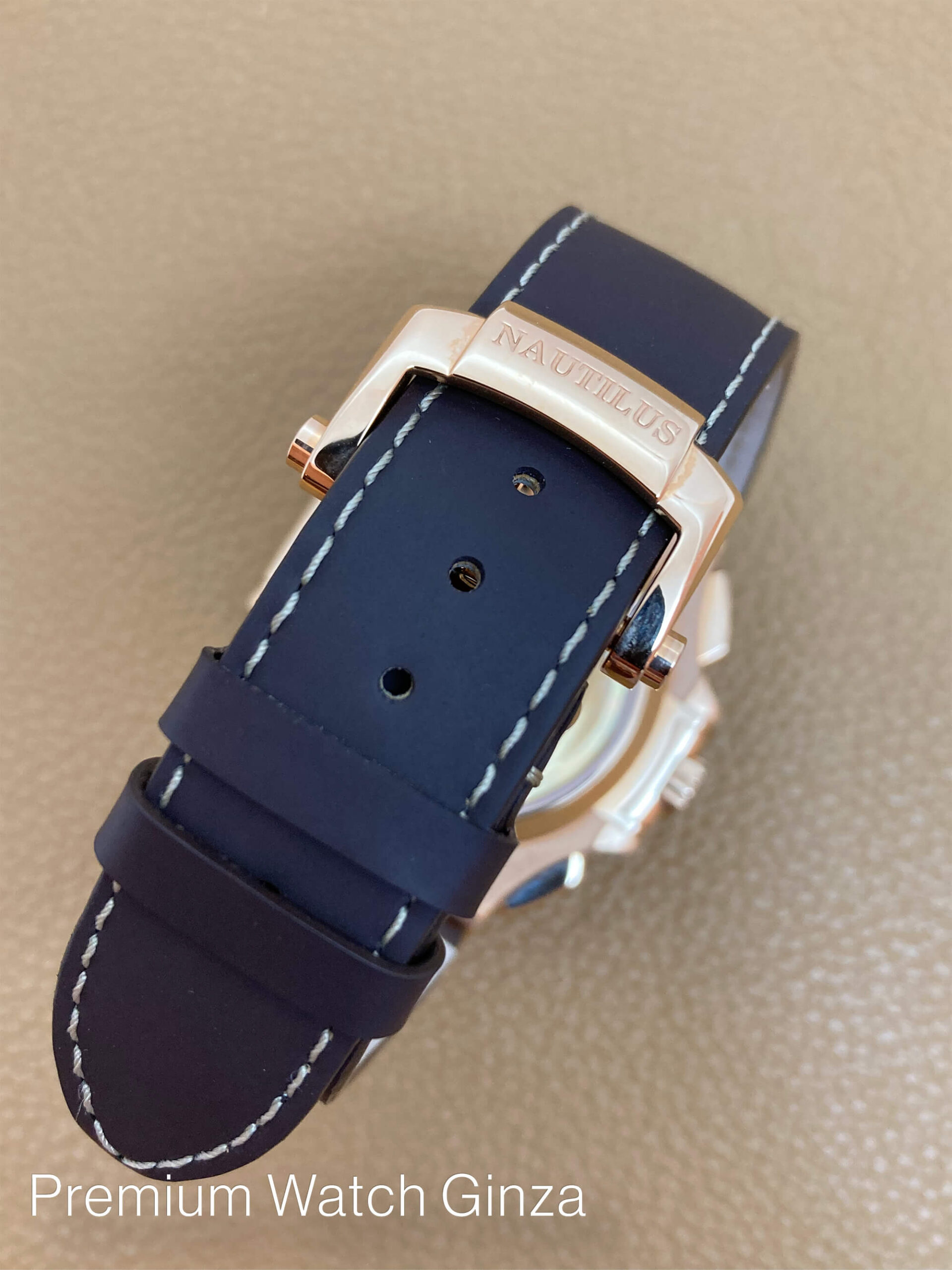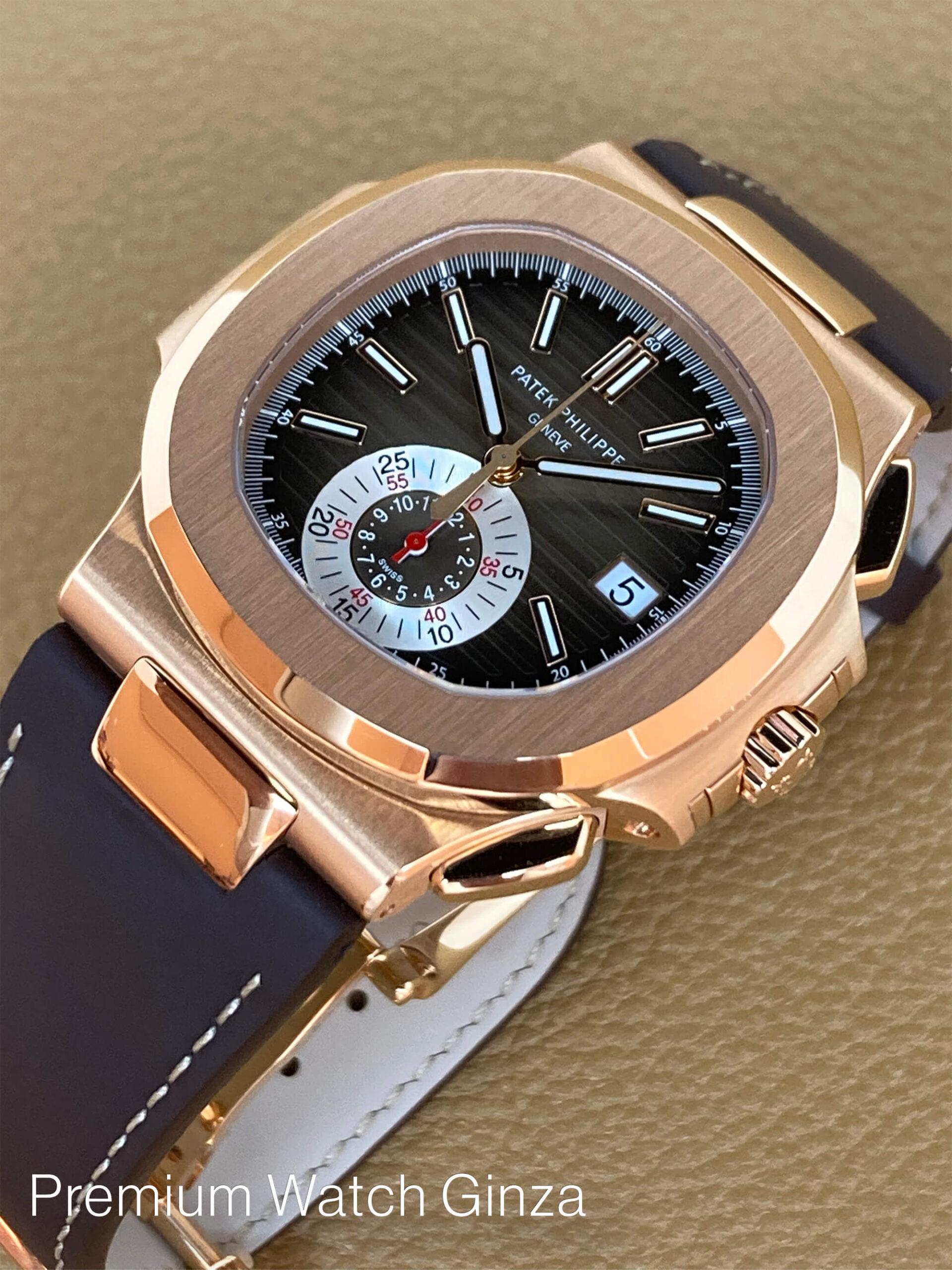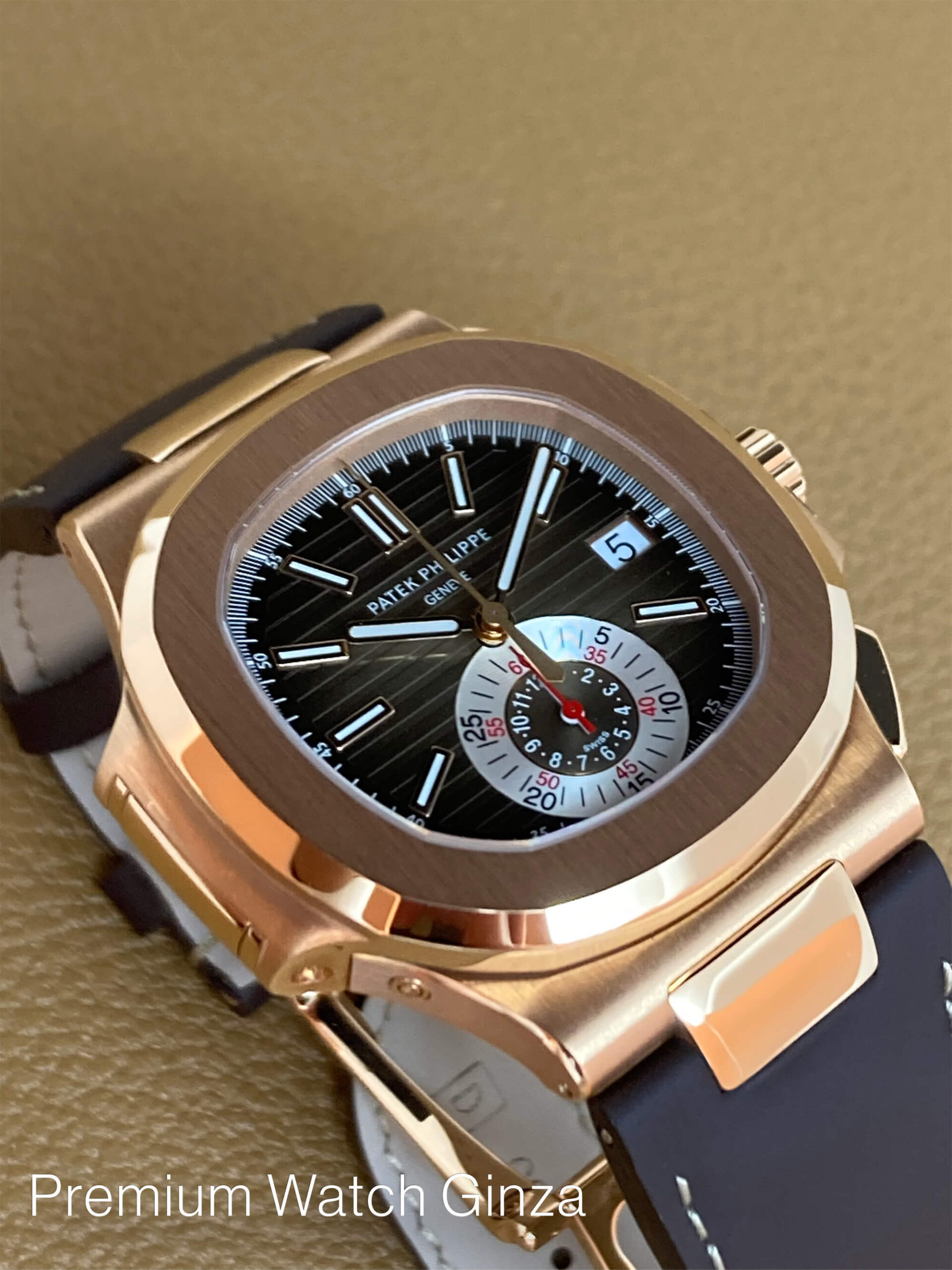 Ref.5980R-001 NAUTILUS CHRONOGRAPH 1976年に誕生したノーチラスコレクション。 ラグジュアリースポーツモデルの代表格として、クラシック時計の様な薄さで、防水時計を製作するという概念の元に数々の機種が販売されて参りました。 一般的な防水時計は、堅牢性を保つ為、ねじ込み式の裏蓋で防水性を維持致します。しかし、その構造は厚みが出てしまう為、高級感が損なわれる欠点が有り、 当時としては革新的な裏蓋を無くし、ケース両サイドの通称「耳」と呼ばれる張り出したパーツをスクリューシャフトで密閉して防水性を確保致しました。 1976年同時期に発売された著名なSUV車レンジローバーの乗車時の際にマッチするスポーティな時計というコンセプトを元に製作されたエピソードもございます。 デザイン元は巨匠ジェラルドジェンタ氏、ロイヤルオークの鋭角な八角形と比較すると控えめで流麗な形状の外装デザインでございますが、 これがパテック哲学を感じて、独自の緩やかで深みを与えてくれる存在となっております。 このRef.5980が発表されたのが、ノーチラス誕生30周年にあたる2006年。 様々なターニングポイントとなったこの年に満を持して搭載されました同社史上初の自動巻きクロノグラフ“Cal.CH 28-520”。 この基幹ムーブメントから派生して様々なモデルがリリースされましたが、そのベースとなるモデルが、このノーチラスクロノグラフでございます。 特にクロノグラフ機構としては革新的な特性は、スモールセコンド(独立型秒針)を無くした事でございます。 従来のクロノグラフはROLEX社のコスモグラフ・デイトナを代表する様に計測用のセンタークロノグラフ秒針と時刻用の秒針を分けて、秒針を2本となる仕様が 従来品の常識でございました。従来クロノグラフの最大の欠点がクロノグラフ動作時に著しく消耗するトルク(主ゼンマイから発する動力の強さ)により、 メインの時刻表示精度に影響を及ぼし、精度低下の原因となる為、クロノグラフ機能の長時間使用は避けられて参りました。 そのクロノグラフの長い歴史で常識を覆す革命を起こしたのが、このCH 28-520系ムーブメントでございます。 スモールセコンドを廃して、2本あった秒針を1本に統一して、センター秒針を計測用と計時用を両立することの出来る機構でございます。 クロノグラフ秒針を常時動作していても計時精度を気にする必要が無くなったのです。 つまり従来のクロノグラフでの概念ではなくなりまして、クロノグラフでありながら、 通常の3針式時計の要領で使用可能となりました。実際デザイン面においても従来の12時間、30分積算計の様な複数ある積算表示の為、 3個~4個のインダイアル表示を廃し6時位置に同心円状に2本の針表示で縦配列構造で12時間、30分積算計を合体させることで 非常に視認しやすいすっきりとした実用にも特化したデザインレイアウトでございます。 同社の製造哲学で“複雑な機構であっても分かりやすくなくてはならない”というものを踏襲している同社を代表するモデルとなりました。 この度の5980R-001は、2010年に発表されたストラップ仕様のモデルでございまして、ブレスレットモデルとの相違点は、 文字盤色が黒から黒茶に変更になった点と6時位置にインダイアルの30分積算系表示目盛りサークルの色をシルバーにマイナーチェンジして、視認性を向上させました。 定価¥11,594,000-(税込)2023年8月時点 |