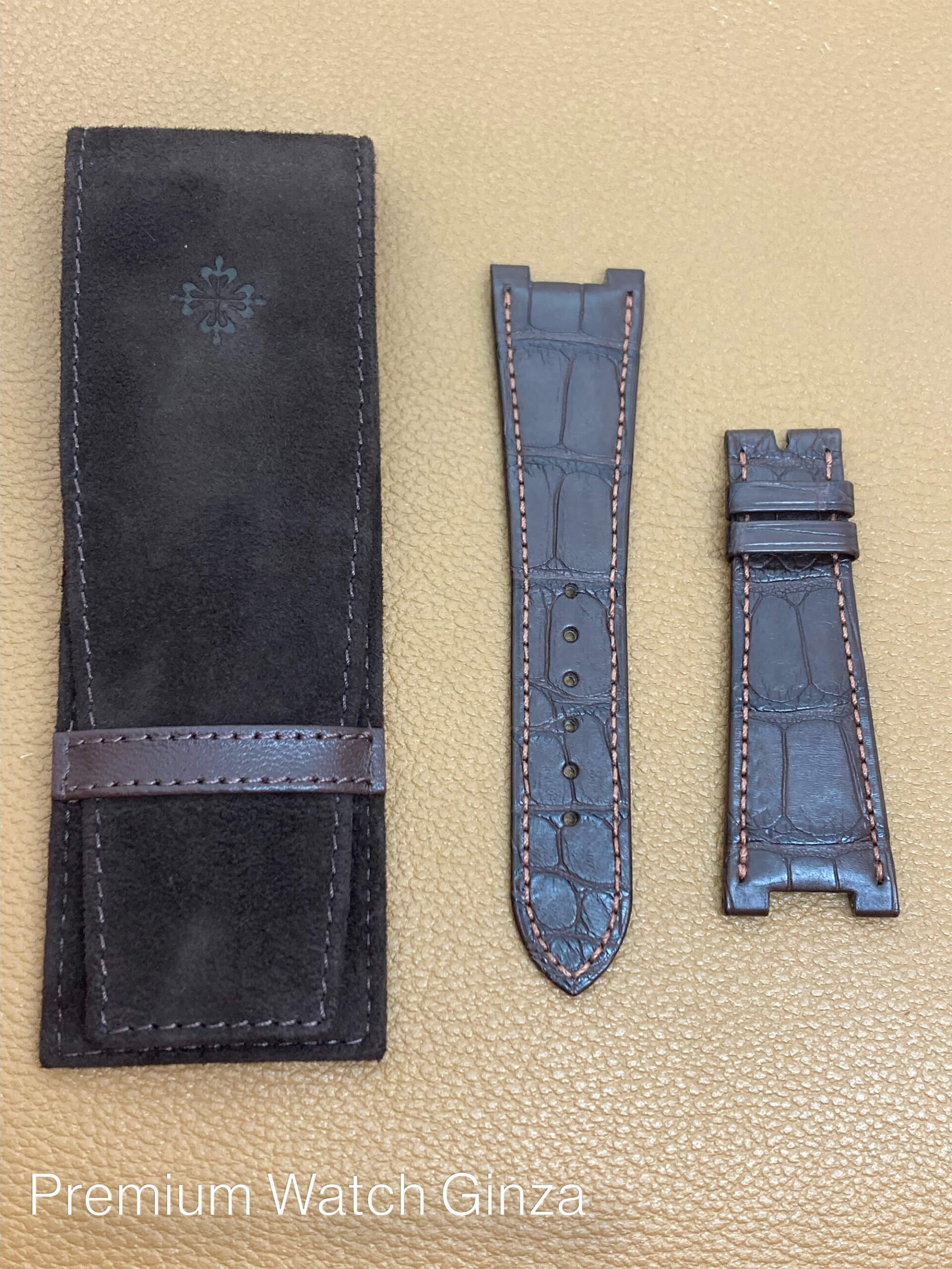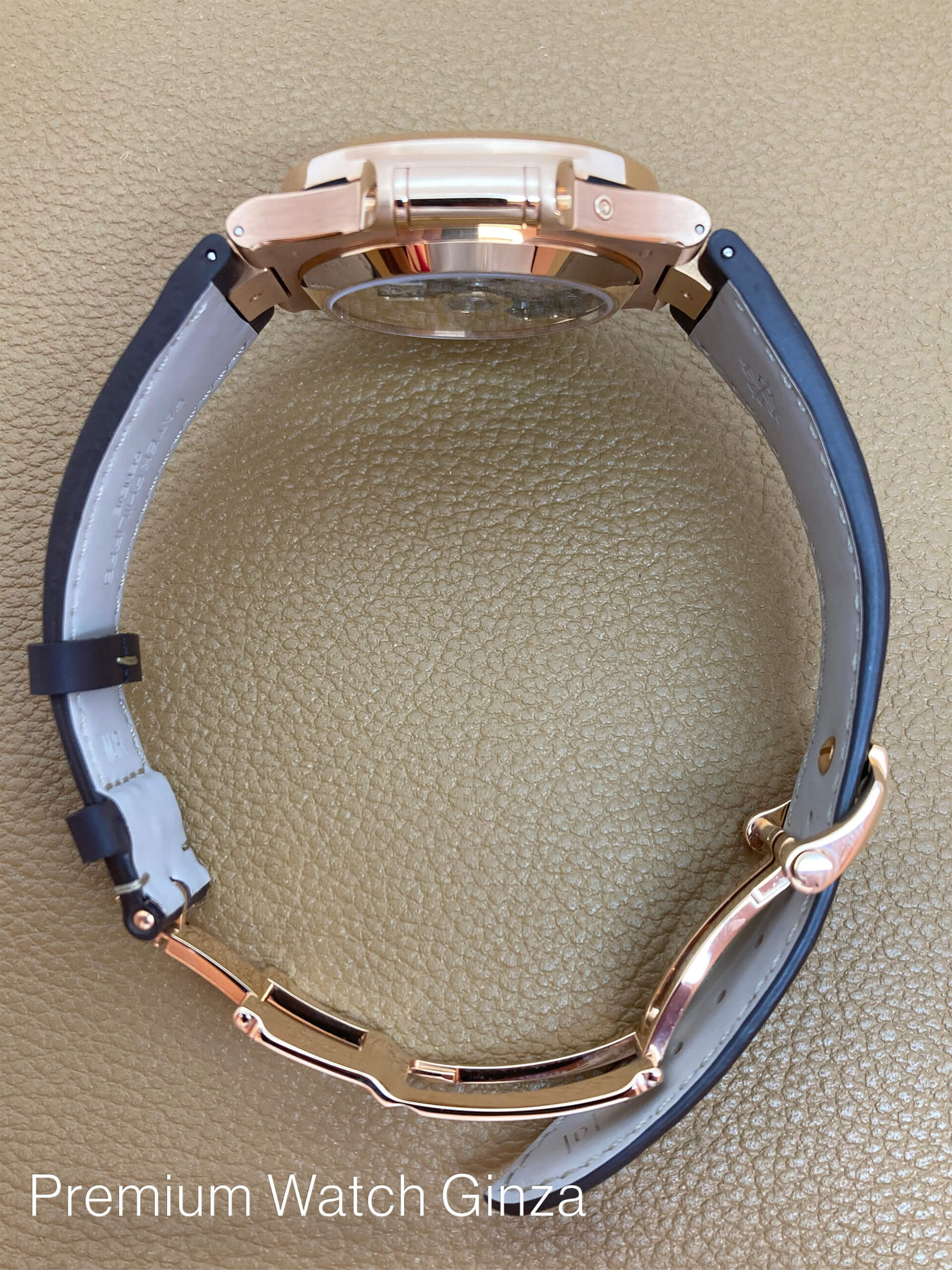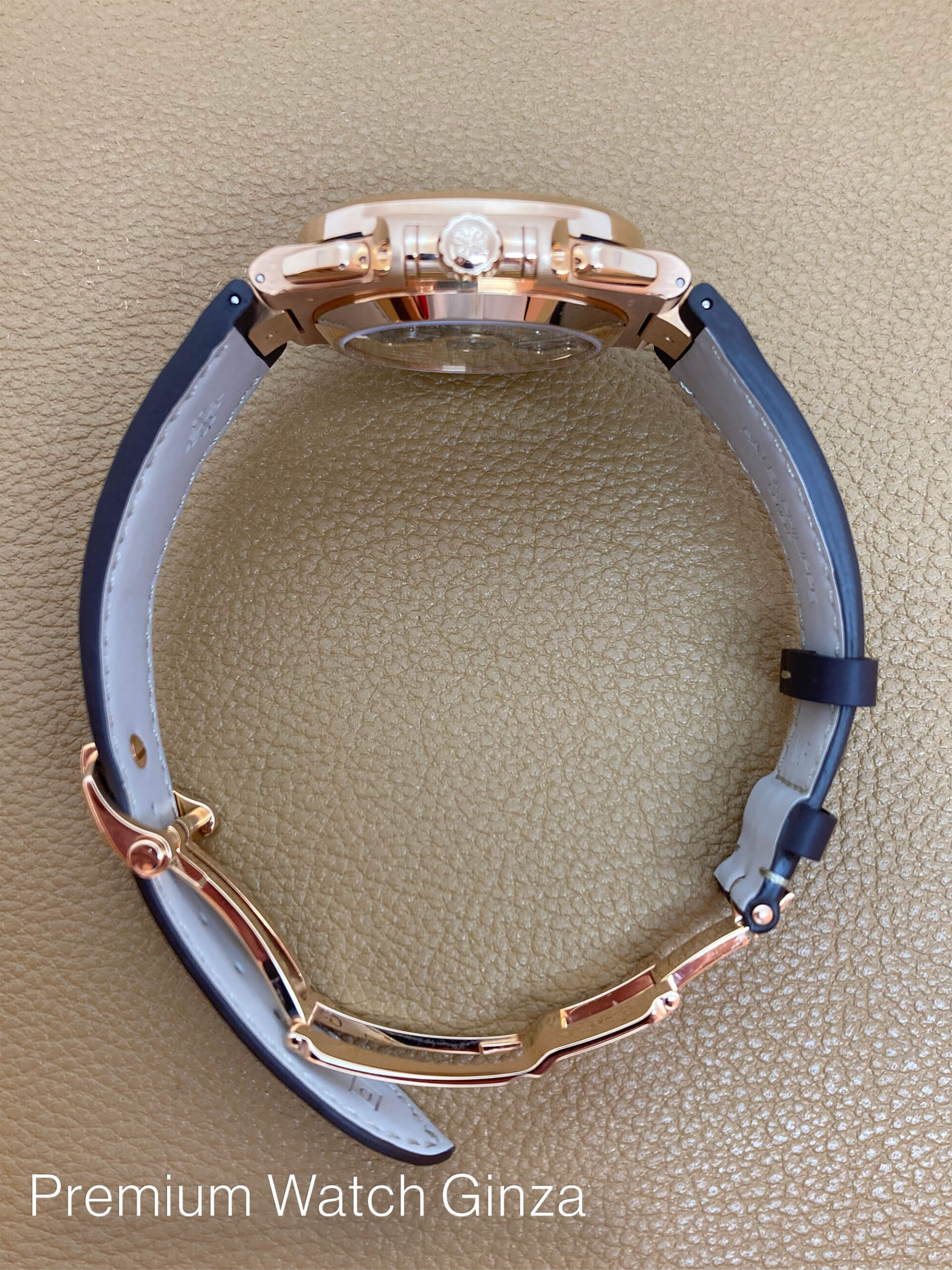 Ref.5980R-001 NAUTILUS CHRONOGRAPH 1976年に誕生したノーチラスコレクション。 ラグジュアリースポーツモデルの代表格として、クラシック時計の様な薄さで、防水時計を製作するという概念の元に数々の機種が販売されて参りました。 一般的な防水時計は、堅牢性を保つ為、ねじ込み式の裏蓋で防水性を維持致します。しかし、その構造は厚みが出てしまう為、高級感が損なわれる欠点が有り、 当時としては革新的な裏蓋を無くし、ケース両サイドの通称「耳」と呼ばれる張り出したパーツをスクリューシャフトで密閉して防水性を確保致しました。 1976年同時期に発売された著名なSUV車レンジローバーの乗車時の際にマッチするスポーティな時計というコンセプトを元に製作されたエピソードもございます。 デザイン元は巨匠ジェラルドジェンタ氏、ロイヤルオークの鋭角な八角形と比較すると控えめで流麗な形状の外装デザインでございますが、 これがパテック哲学を感じて、独自の緩やかで深みを与えてくれる存在となっております。 このRef.5980が発表されたのが、ノーチラス誕生30周年にあたる2006年。 様々なターニングポイントとなったこの年に満を持して搭載されました同社史上初の自動巻きクロノグラフ“Cal.CH 28-520”。 この基幹ムーブメントから派生して様々なモデルがリリースされましたが、そのベースとなるモデルが、このノーチラスクロノグラフでございます。 特にクロノグラフ機構としては革新的な特性は、スモールセコンド(独立型秒針)を無くした事でございます。 従来のクロノグラフはROLEX社のコスモグラフ・デイトナを代表する様に計測用のセンタークロノグラフ秒針と時刻用の秒針を分けて、秒針を2本となる仕様が 従来品の常識でございました。従来クロノグラフの最大の欠点がクロノグラフ動作時に著しく消耗するトルク(主ゼンマイから発する動力の強さ)により、 メインの時刻表示精度に影響を及ぼし、精度低下の原因となる為、クロノグラフ機能の長時間使用は避けられて参りました。 そのクロノグラフの長い歴史で常識を覆す革命を起こしたのが、このCH 28-520系ムーブメントでございます。 スモールセコンドを廃して、2本あった秒針を1本に統一して、センター秒針を計測用と計時用を両立することの出来る機構でございます。 クロノグラフ秒針を常時動作していても計時精度を気にする必要が無くなったのです。 つまり従来のクロノグラフでの概念ではなくなりまして、クロノグラフでありながら、 通常の3針式時計の要領で使用可能となりました。実際デザイン面においても従来の12時間、30分積算計の様な複数ある積算表示の為、 3個~4個のインダイアル表示を廃し6時位置に同心円状に2本の針表示で縦配列構造で12時間、30分積算計を合体させることで 非常に視認しやすいすっきりとした実用にも特化したデザインレイアウトでございます。 同社の製造哲学で“複雑な機構であっても分かりやすくなくてはならない”というものを踏襲している同社を代表するモデルとなりました。 この度の5980R-001は、2010年に発表されたストラップ仕様のモデルでございまして、ブレスレットモデルとの相違点は、 文字盤色が黒から黒茶に変更になった点と6時位置にインダイアルの30分積算系表示目盛りサークルの色をシルバーにマイナーチェンジして、視認性を向上させました。 定価¥11,594,000-(税込)2023年8月時点 |