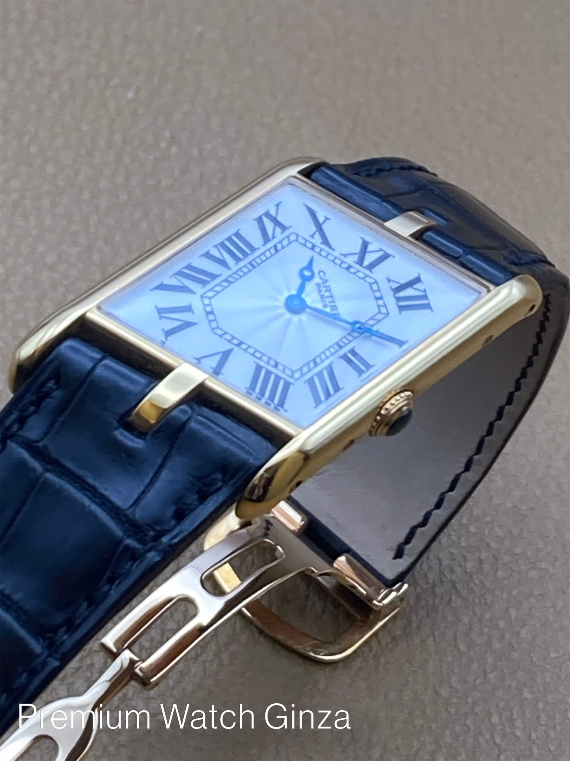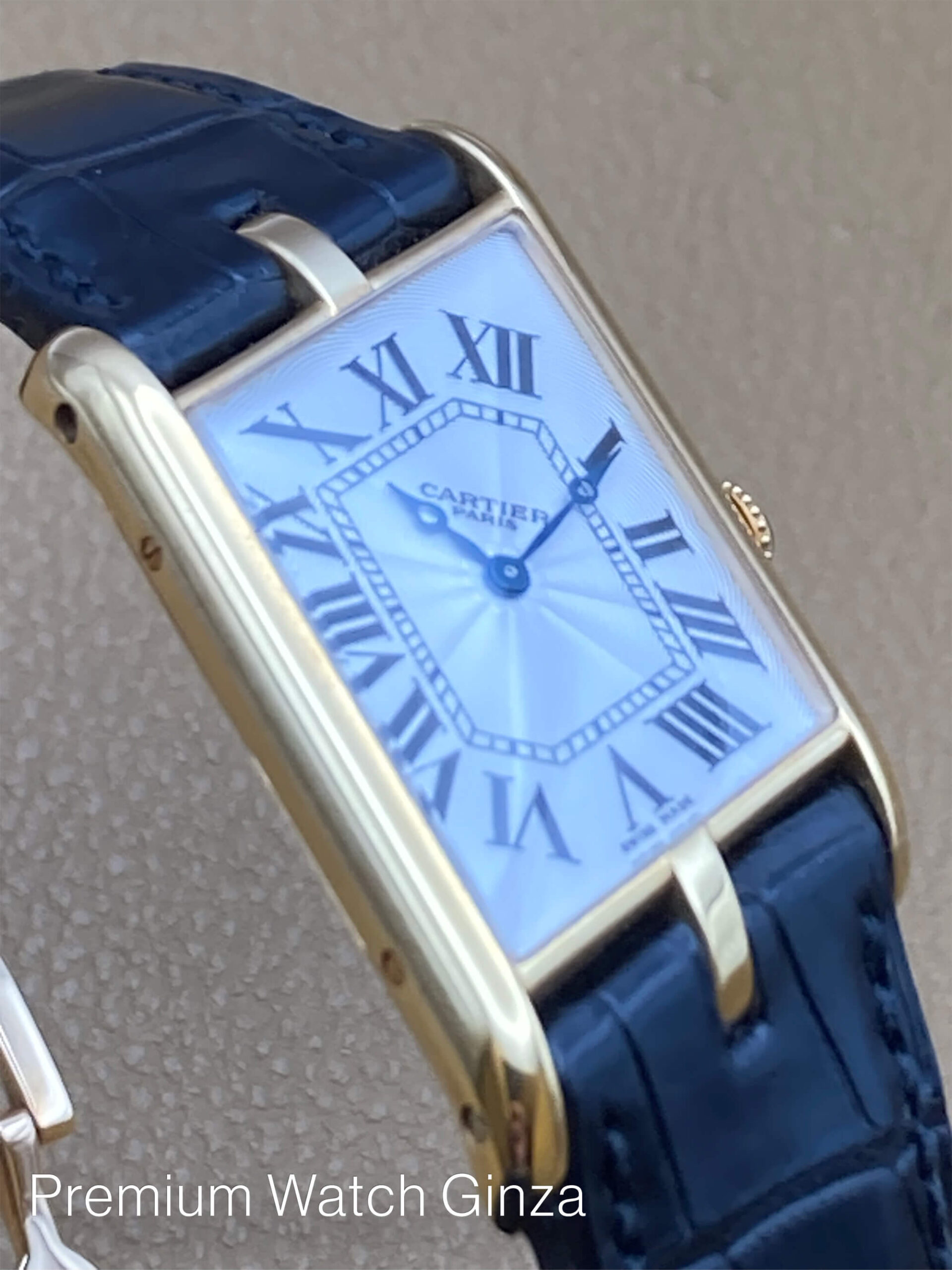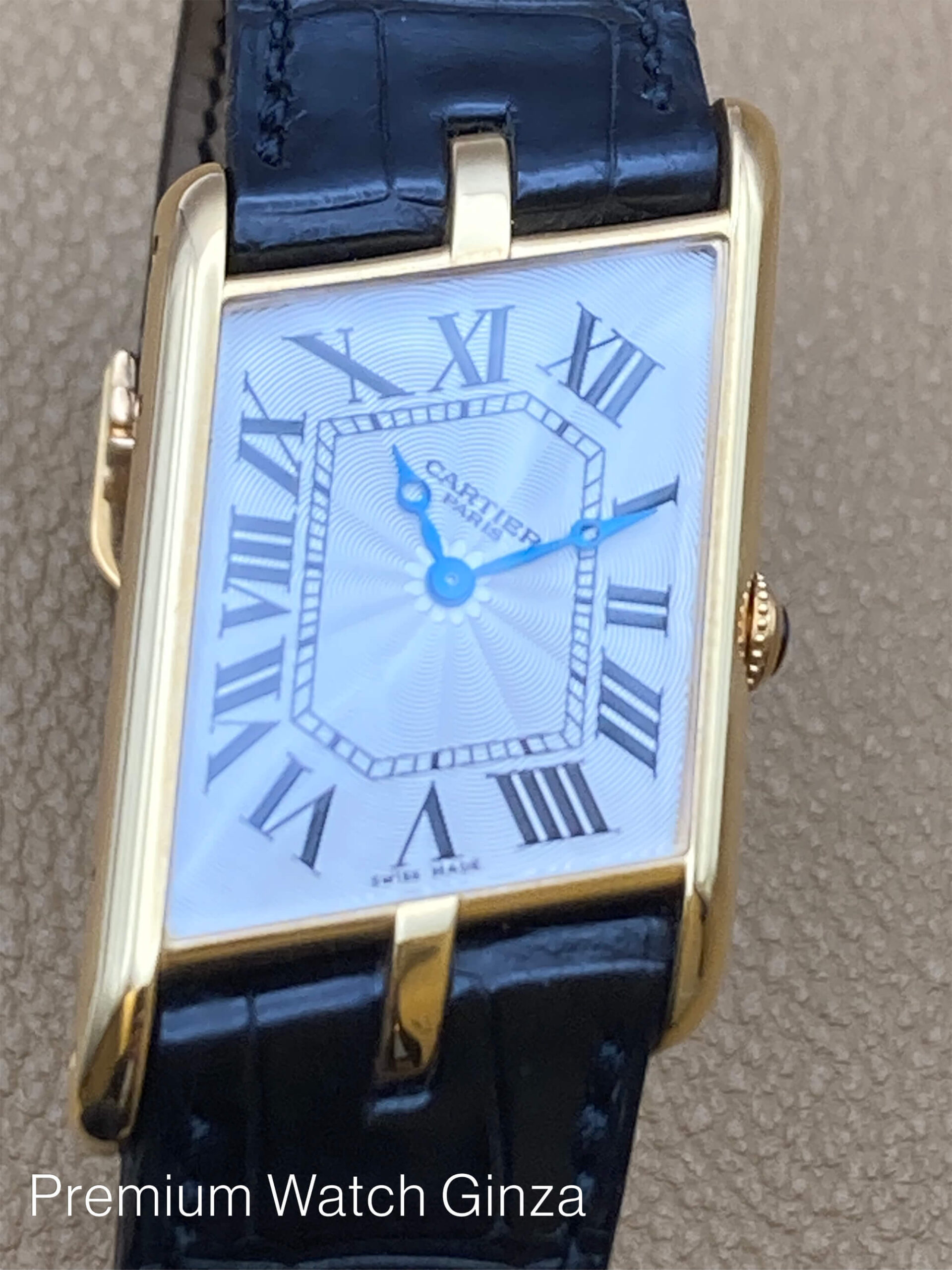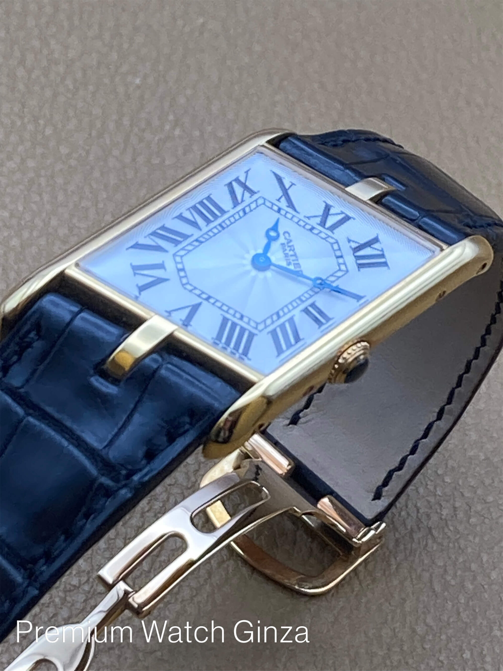 タンクアシンメトリック Tank Asymetrique Limited 150pcs 1936年に初代機が発売され、1998年から本格始動となったCPCP(コレクションプリヴェカルティエパリ)にてCal.9P2のピアジェ製マニュファクチュールムーブを使用した希少な世界限定モデル。 車の運転の際に腕を自然と曲げた時の角度にあわせた左右非対称(アシンメトリック)なデザインは伝統的なクラシックデザインで、通称ドライバーズウォッチとも呼ばれます。 CPCPコレクションモデルはCARTIERロゴの下に“PARIS”が入るのが特徴でございまして、同社を象徴するデザインコードであるローマンインデックスと 自社工房の高温の窯で焼き上げた青焼き針(ブルースチール)、流麗なギョウシェ装飾を施された文字盤が絶妙なバランスでデザインされております。 これまた自社でのガラス工房にて生成されたサファイアクリスタルガラスは、ケースの形状に合わせた得意の湾曲型の特殊加工を施しております。 近年リバイバル販売された100本限定のアシンメトリックとは、一線を画す魅力が本モデルにはございます。 生産終了品 |