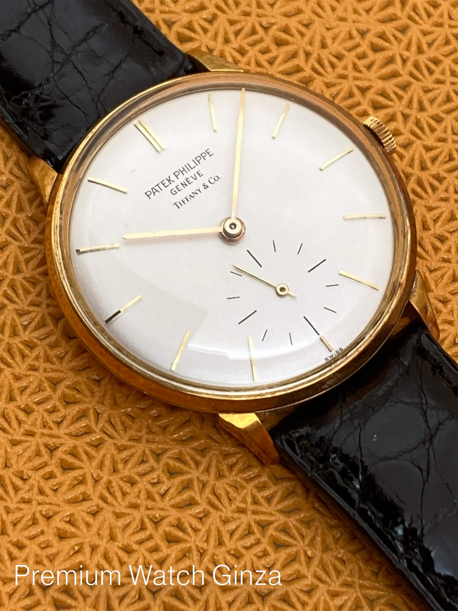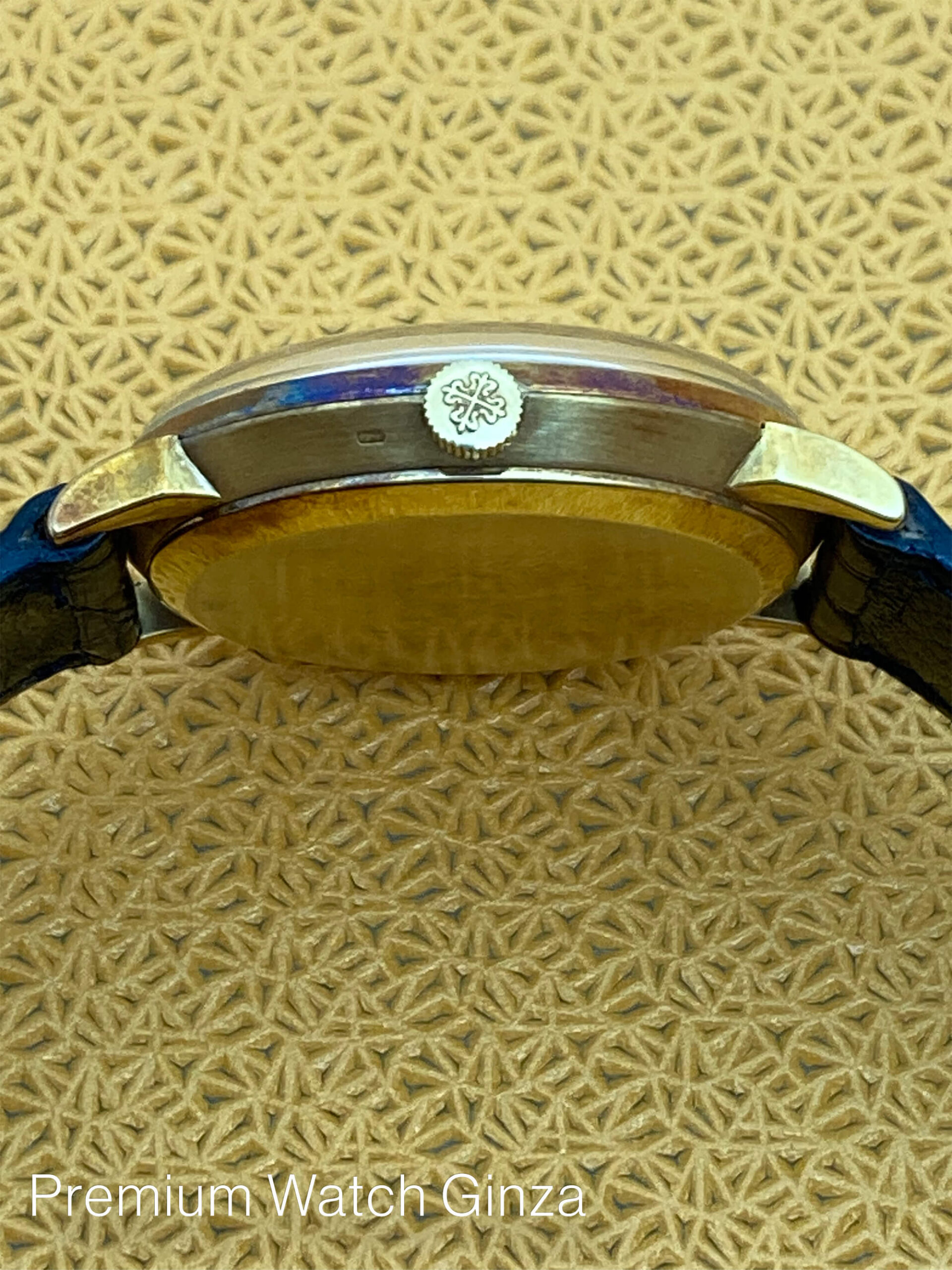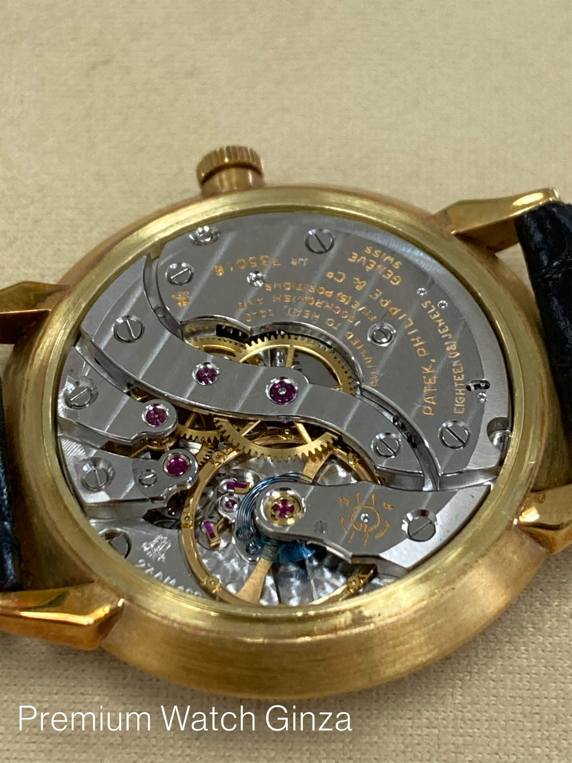 Ref.3420J CALATRAVA Tiffany 1960~1983年まで製造のcal.27-AM400搭載の3420でございます。 12型系の3代目として誕生したキャリバーですが、特徴としてはAM=アンチマグネティック仕様のムーブメントで、 当時の主要部品として炭素鋼で製造されるところ、非磁性の素材を用いて製造されたオールドパテックの中では唯一のムーブメントでございます。 また手巻きムーブメントとしては、現代機にも繋がるチラネジ付きテンプから、ジャイロマックス・テンプへの変更されたのも同キャリバーからでございますので、非常に優れたキャリバーでございます。 |