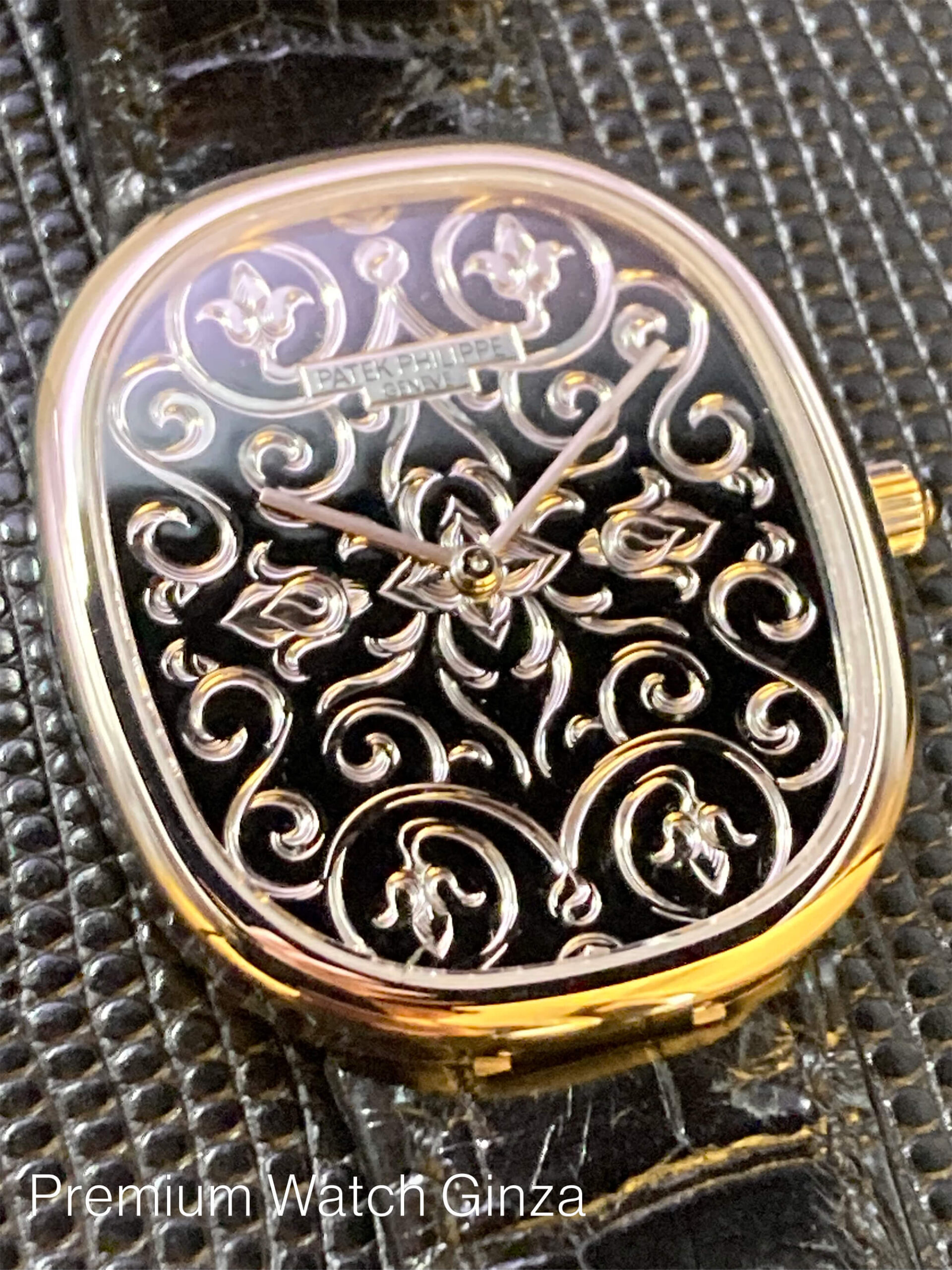 その半世紀に渡るロングセラーモデルに同メゾンの伝統装飾技術の粋を詰めた華美なデコレーション文字盤を堪能できる1本でございます。