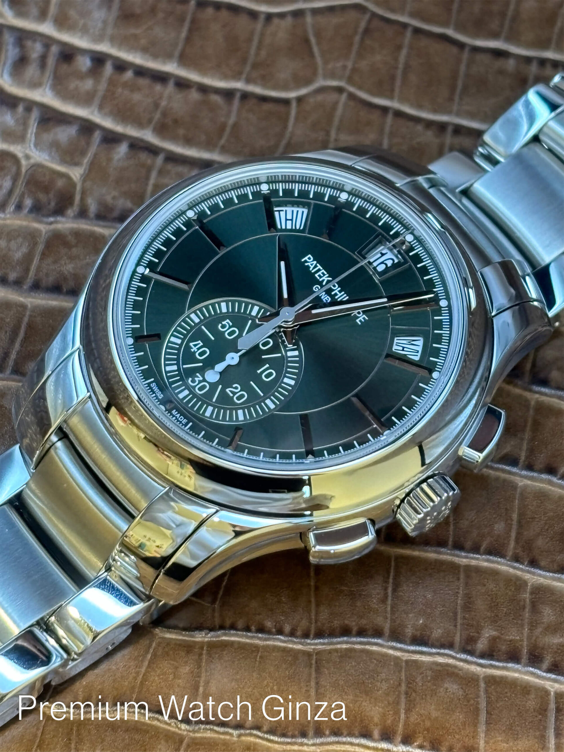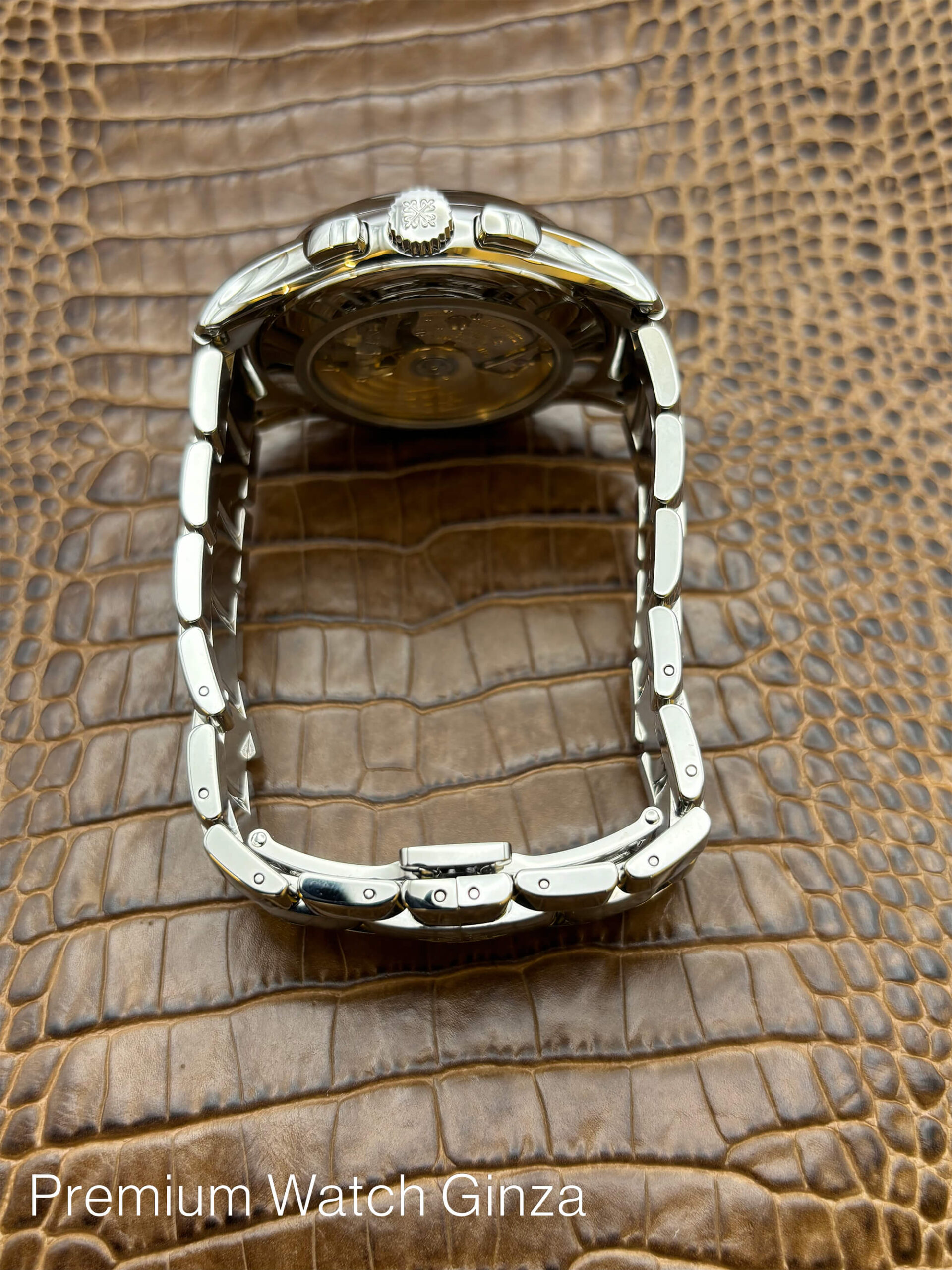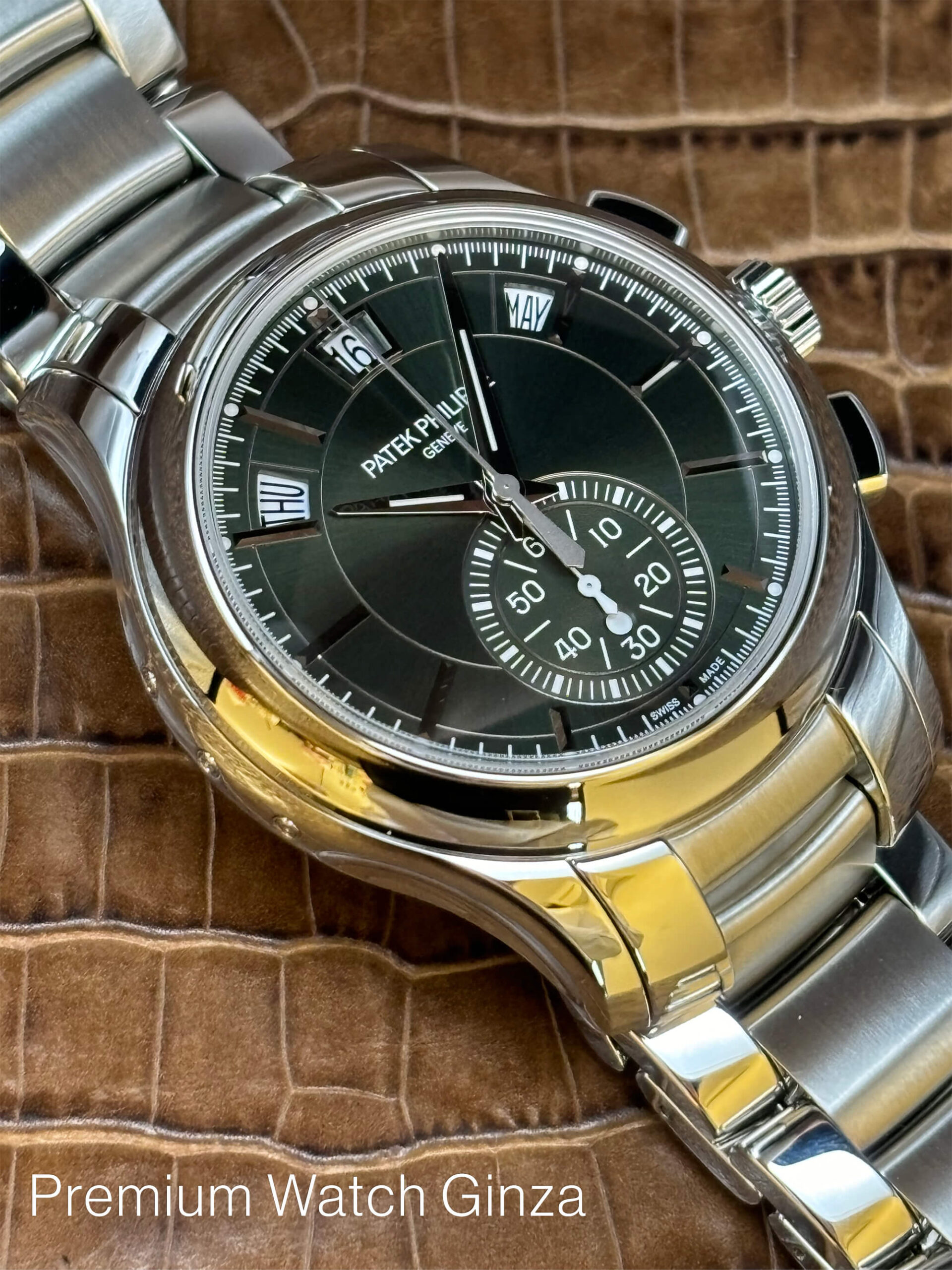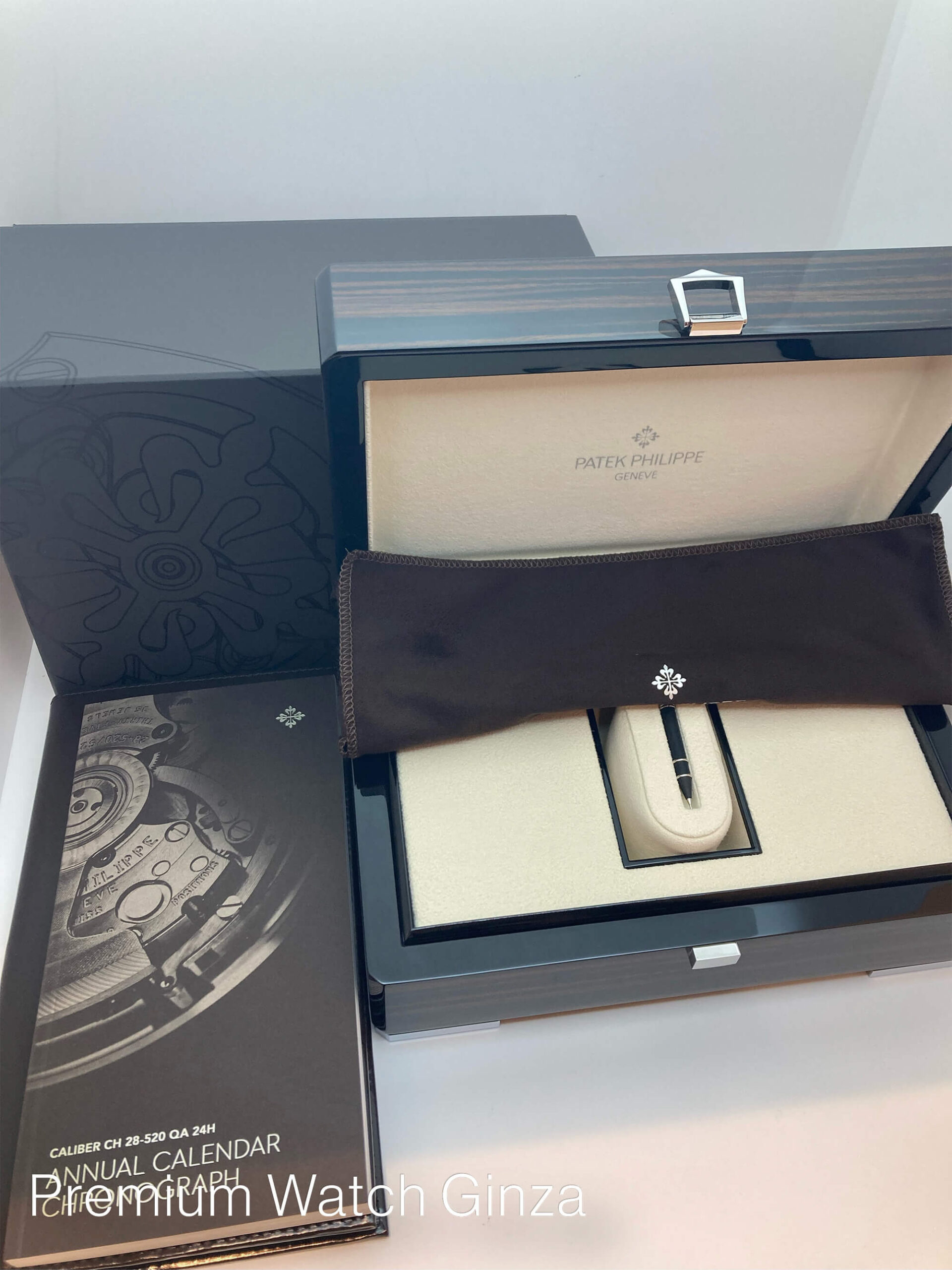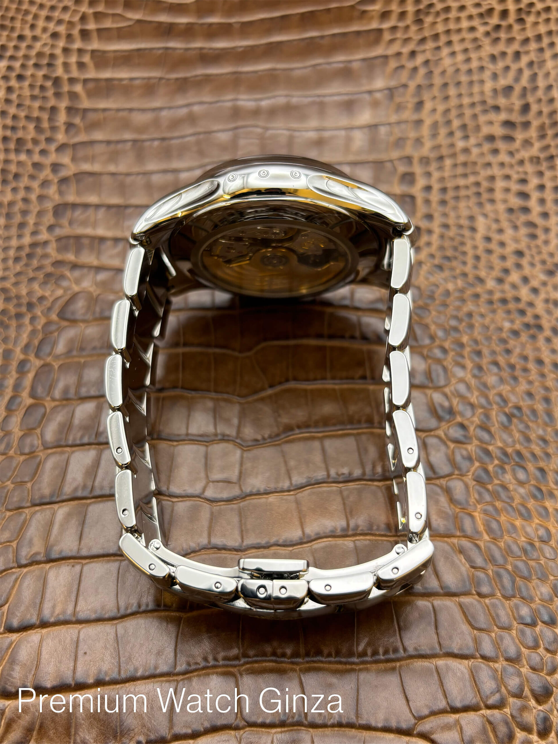 Ref.5905/1A-001 Annualcalendar Chronograph 2015年にプラチナモデルのみで当初発表された本モデルのルーツは、 2006年に初めて発表されたRef.5960モデルでパテック・フィリップでは初となる年次カレンダー搭載クロノグラフモデル。 これまでにないモダンなデザインと同メゾン初となる完全自社製自動巻き クロノグラフムーブメントのデビューモデルとして脚光を浴びた人気モデルでございます。 新世代でモダンなパテック・フィリップのコレクションを象徴するデザインで、ダイヤル上部に弧を描く様に 配置された3つのカレンダー表示(曜日・日付・月)は本モデルから全て立体的なフレームの窓枠へと変更され、 時分針はスポーティな表情に合わせて形状も変更されております。 一見スポーティなルックスでございますが、パテック・フィリップの高度な仕上がりによりスポーティさと高級感の両方を併せ持ったモデルでございます。 「年次カレンダー」、「フライバック・クロノグラフ(クロノグラフ秒針をセンターセコンドのように常に動作が可能)」、 「デイナイト表示」と日常使いに適したコンプリケーションモデルというだけでなく、 本モデル独自の意匠としてパテックフリップの外装技術で、 グランドコンプリケーションのみに特に多く採用されるオープンワークをケーサイドに施した特別仕様のモデルでございます。 定価¥10,280,000-(税込) ※2024年11月時点 |