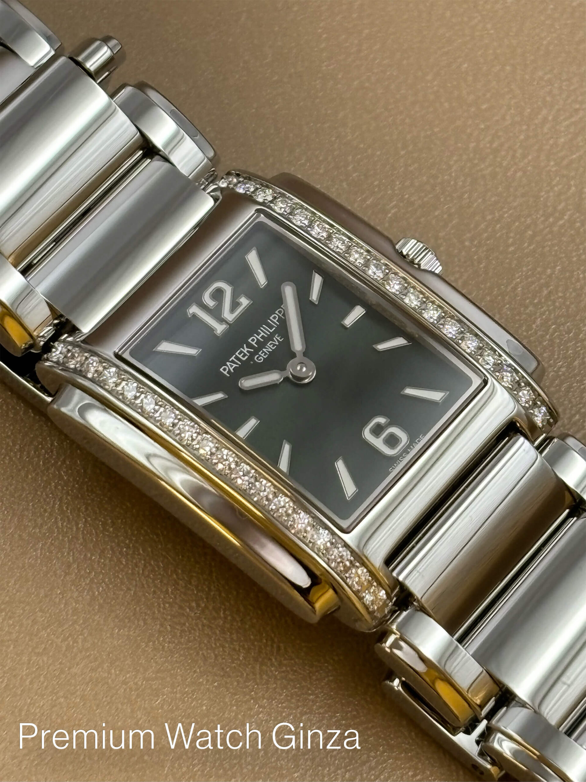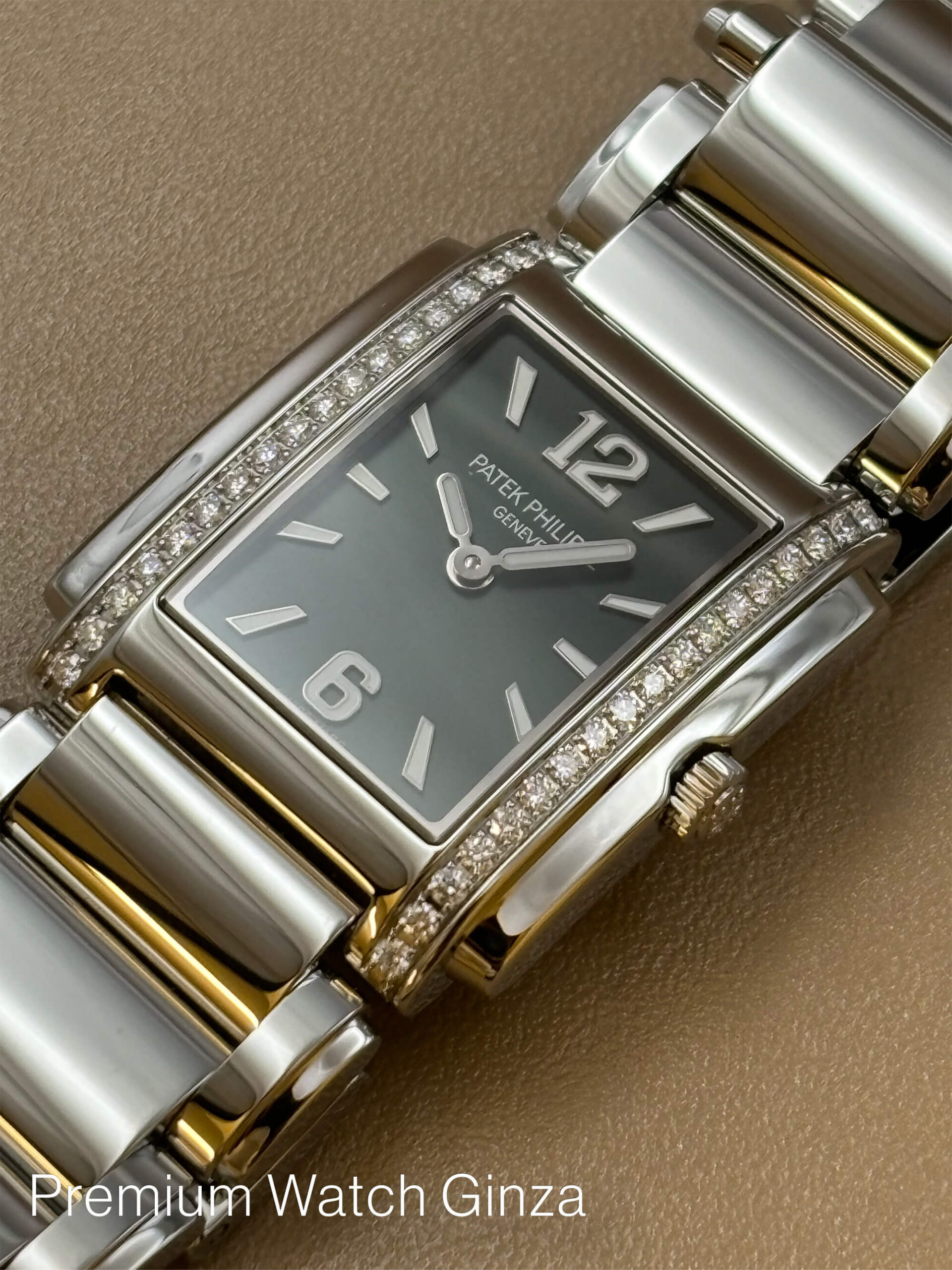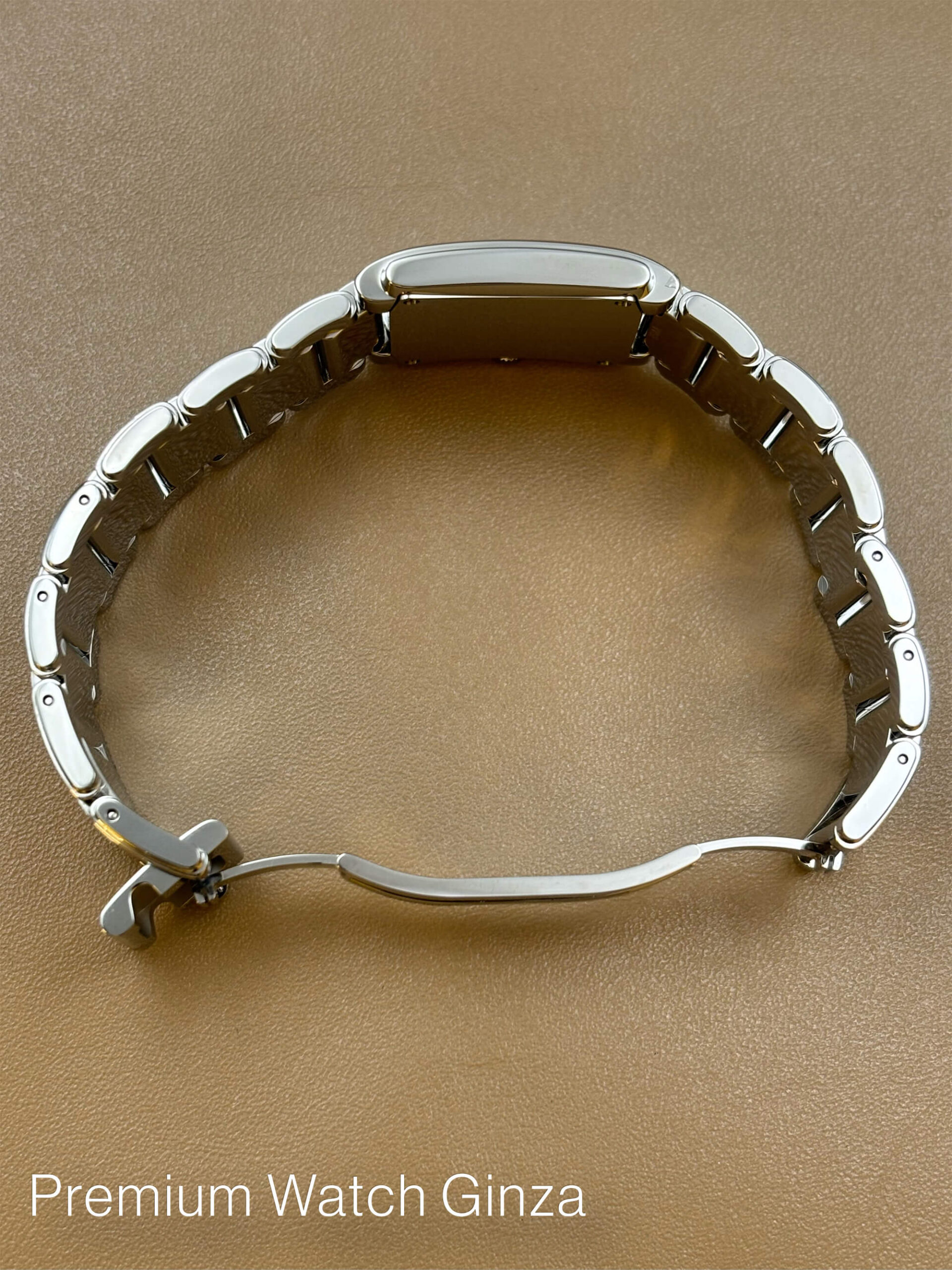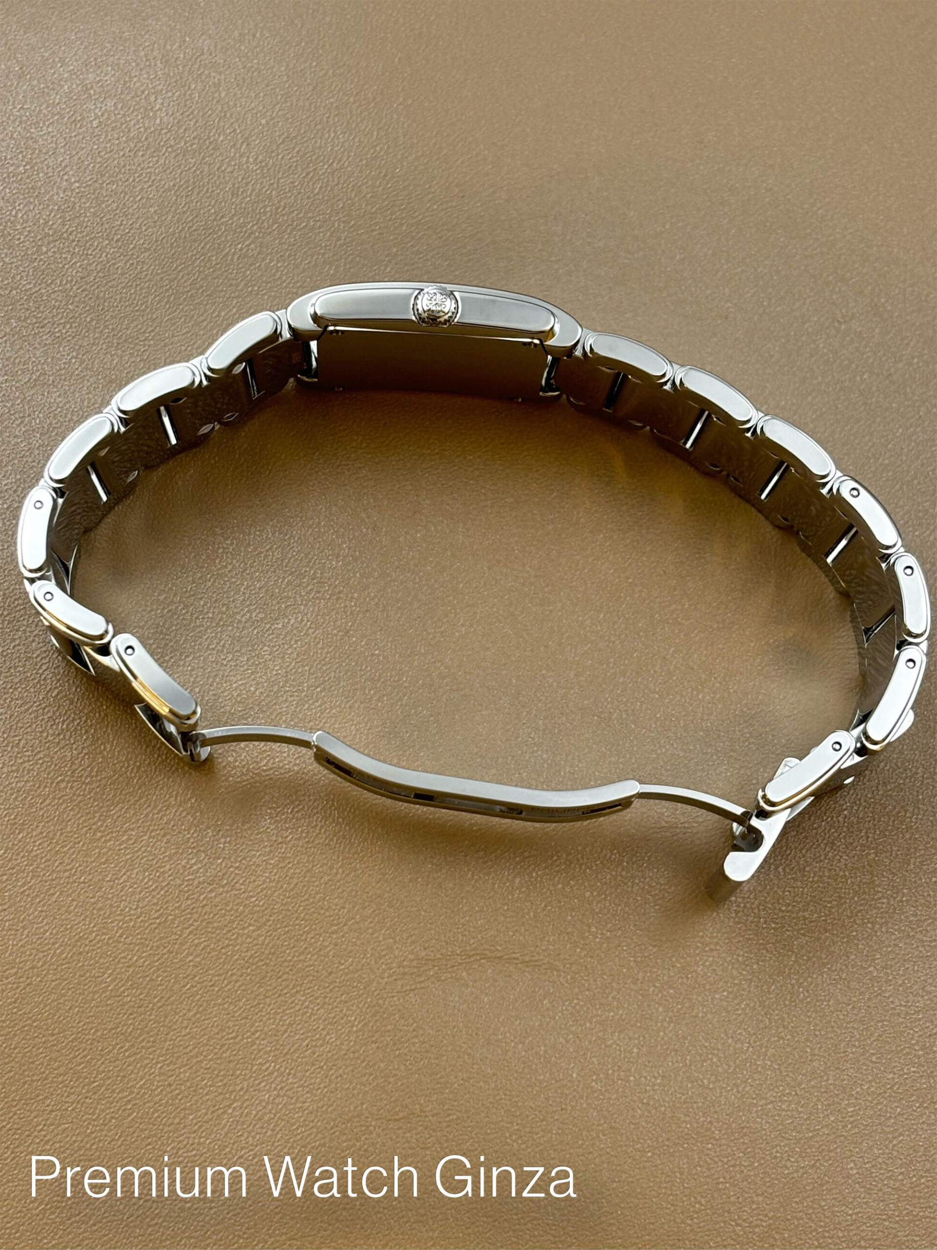 Ref.4910/1200A-011 Twenty~4 1999年に発表されたトゥエンティフォーは、同メゾン初の女性専用コレクションでございます。 当時、クラシカルなアールデコ様式のレクタンギュラーが多く発売されておりましたカルティエのタンクフランセーズ、ジャガールクルトのレベルソ、 そして、同メゾンでは20世紀末に向けたミレニアムコレクションを製作していた時期でございまして、レクタンギュラー型としては代表格として、Ref.5101(10デイズトゥールビヨン)、Ref.5100(ミレニアムコレクション10デイズ)がございますが、 コレクションと致しましては、ゴンドーロではレギュラーモデルとして、 数々のモデルの系譜を辿ってきておりますが、Ref.5124がレクタンギュラー型としては、こちらのトゥエンティフォーに近い形状でございますが、 ケースサイドの2重の段差をつけて形成を行ない、角型とは思えない程の流麗なフォルムと巧みな仕上げ手法による質感が他ブランドとは次元の異なる域にございます。 本モデルは、2020年にモデルチェンジにて発表されておりまして、基本設計やサイズは一切変わらず、文字盤デザインが一新されておりまして、オリーブグリーンは新色で追加されております。 1999年の発表から今年で25年になりますが、四半世紀の間で一切のデザイン変更は行なっておりません。時計業界において、10年不変で販売続けられたら、 ベストセラーモデルとして、認知されますが、女性コレクションでは唯一無二の存在ではないでしょうか。 定価¥2,570,000-(税込) ※2024年11月時点 |