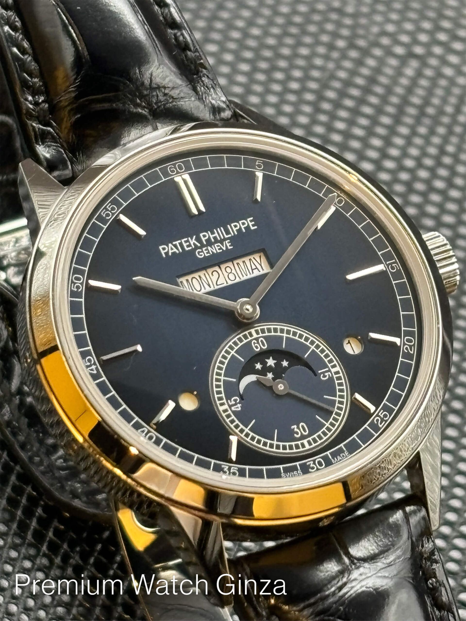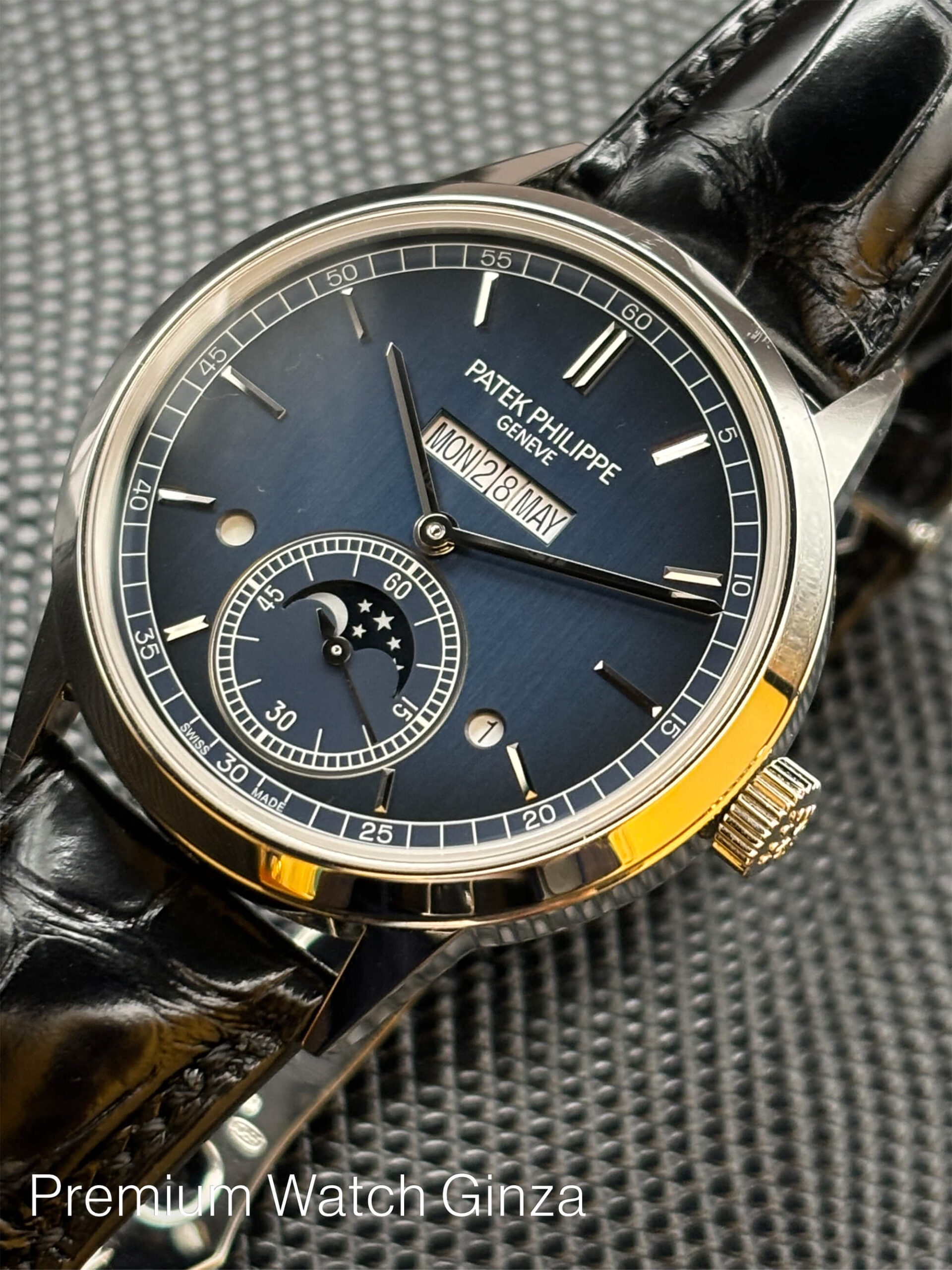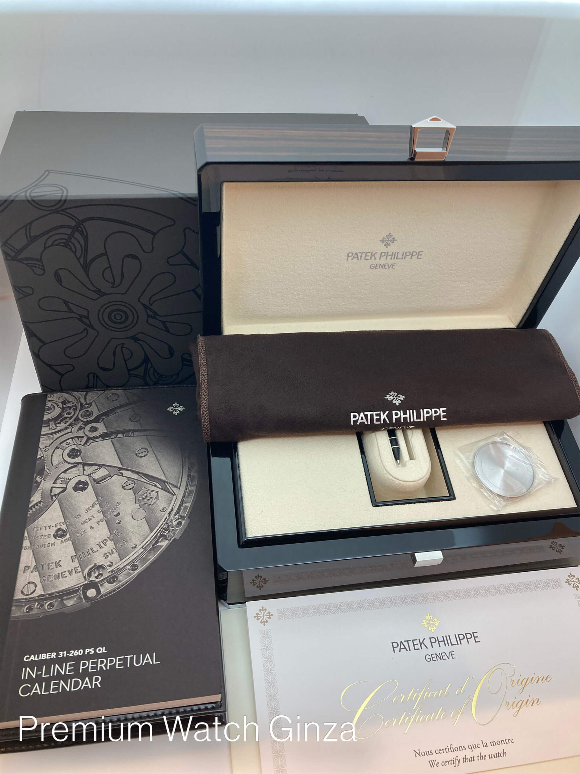 Ref.5236P-001 INLINE PERPETUAL CALENDAR 2022年に発表された次世代の新機軸ムーブメント“インライン・パーペチュアルカレンダー”でございますが、既存の伝統的な指針のカレンダー表示からフルデジタル表示ディスクで、月、曜日、日付を12時位置に横並びに配置して、デザインに革新性をもたらし、操作性、視認性を格段に向上させております。 また、瞬間的なカレンダー機構の切り替え精度は卓越した同社の強みでございまして、歴史的にこの永久カレンダー機構の製作を得意としてきておりまして、 一見すると型破りなデザインの本モデルも同社の永年の培った独自の製作技術や実績によるところで、他社では模倣の仕様が無い別格の完成度でございます。 定価¥22,390,000-(税込)※2025年1月時点 |
