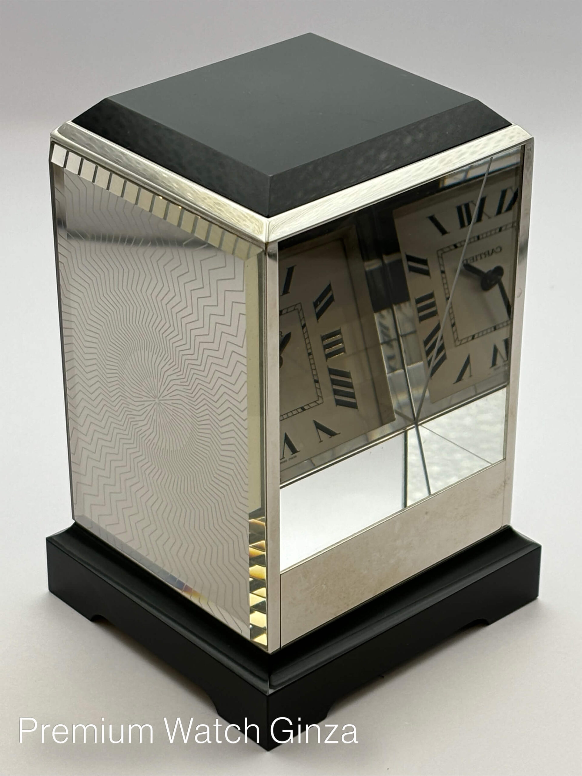 多面的な配置によって発する光の屈折を利用して、視覚的な遊びのデザインが面白いユニークな置き時計でございます。
