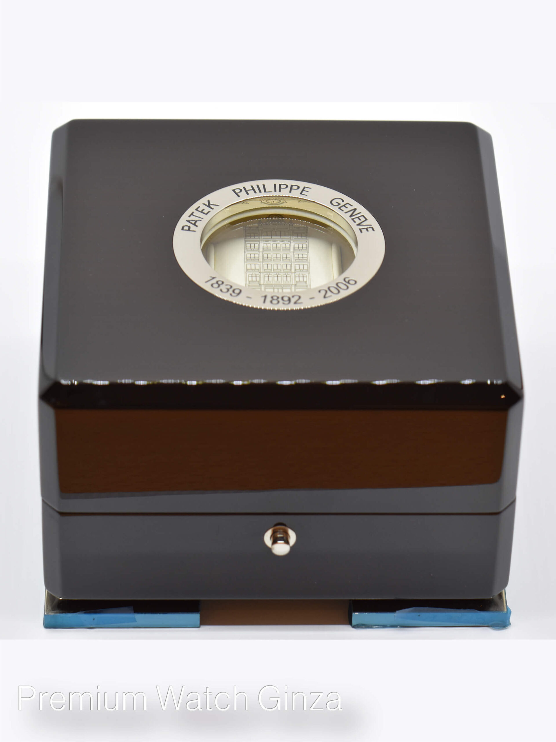 Ref.5565A-001 CALATRAVA Geneve Btq Ltd 300pcs 2020年に新工房の完成を祝う記念モデルとしてRef.6007A-001のステンレススティール製カラトラバが1000本の限定モデルで発表され話題をさらいました。 パテック・フィリップでは節目に限定モデルが発表されており、それらは入手の難易度から希少価値の高い作品となっております。 この度ご紹介致しますRef.5565A‐001はパテック・フィリップのジュネーブサロンが2006年に完成された事を祝して発表されたステンレススティール製のカラトラバでございます。 デザインの元とされておりますのがヴィンテージ・パテック・フィリップの中でも高い人気を誇るRef.565。 1930年代後半~1950年代に製造され当時としては大径な35㎜のケースサイズでベゼルが無くケースとベゼルが一体となりスクリューバックの裏蓋との2ピース構造のケース、 マッシュルーム型の竜頭をした特徴的なカラトラバでございます。 そういった過去のアーカイブからデザインを踏襲し更に記念モデルらしく裏蓋にはジュネーブサロンの外観を刻印した本モデルは非常に価値の高い作品であるといえるでしょう。 こちらは限定本数が300本と製造された個体数が少ない為、発表から10数年経過した今でもセカンドマーケットに出回る機会が非常に少ない作品でございます。 |